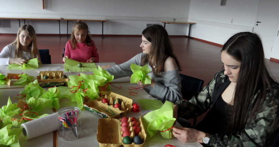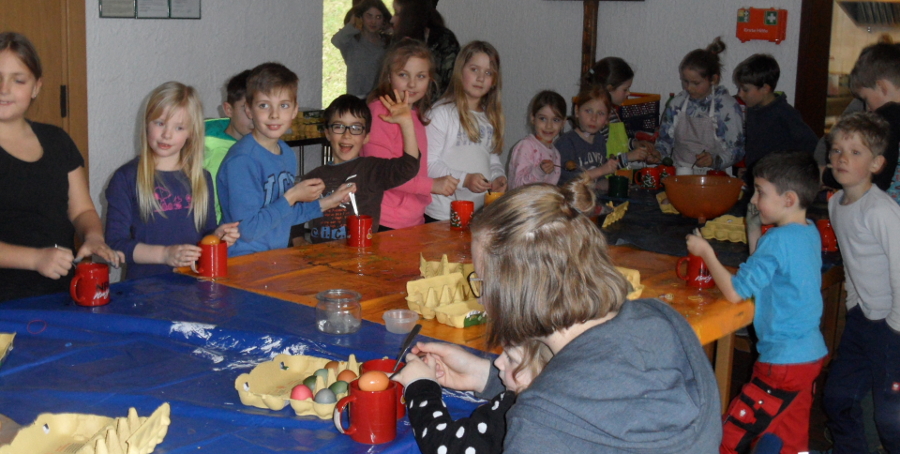 In der Karwoche haben 27 Kinder, 3 Jugendliche und 4 Erwachsene 550 Ostereier mit großer Begeisterung gefärbt und anschließend jedem Bewohner des Seniorenheims ein Ei geschenkt.