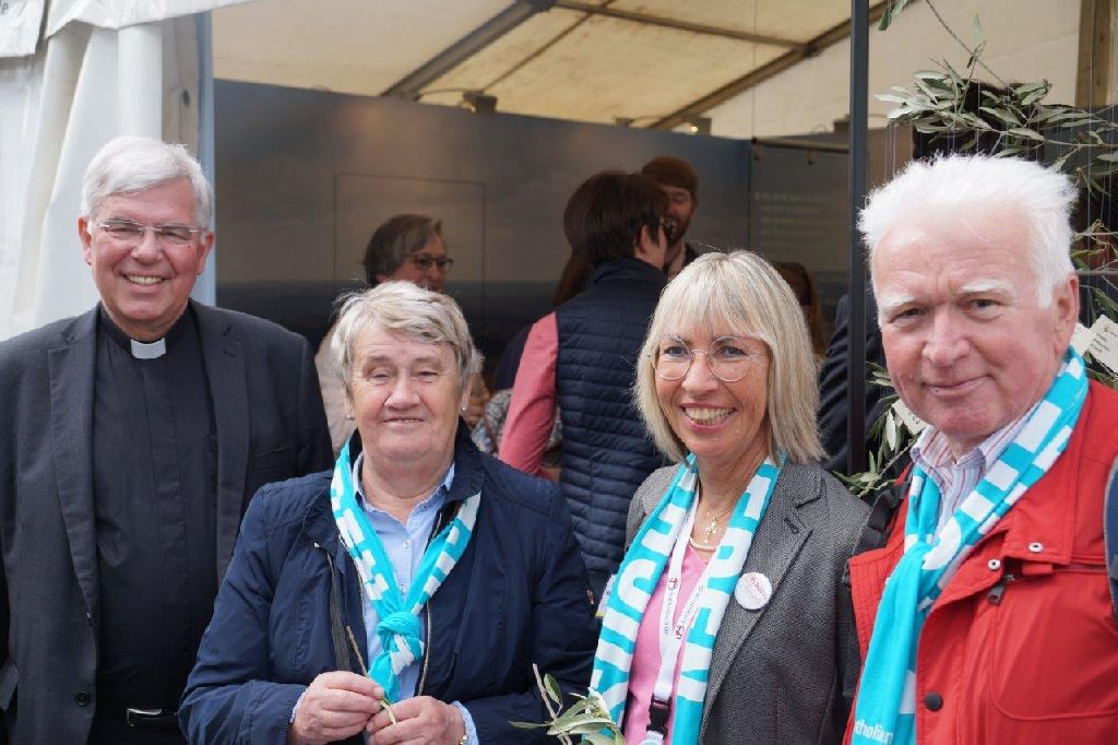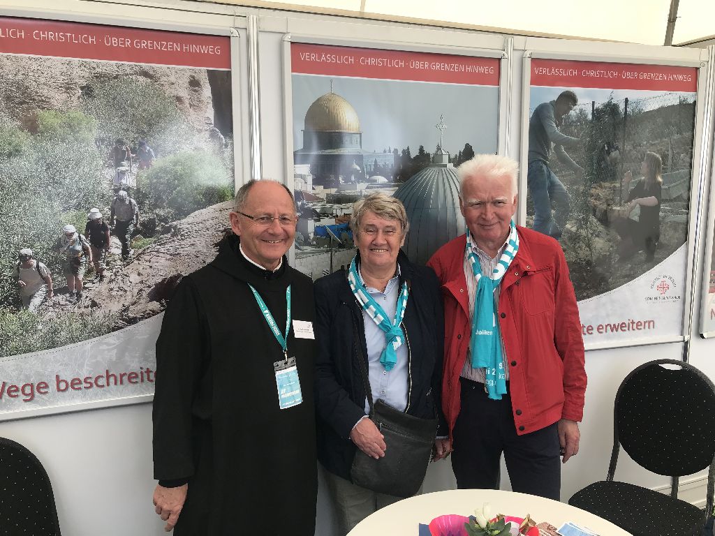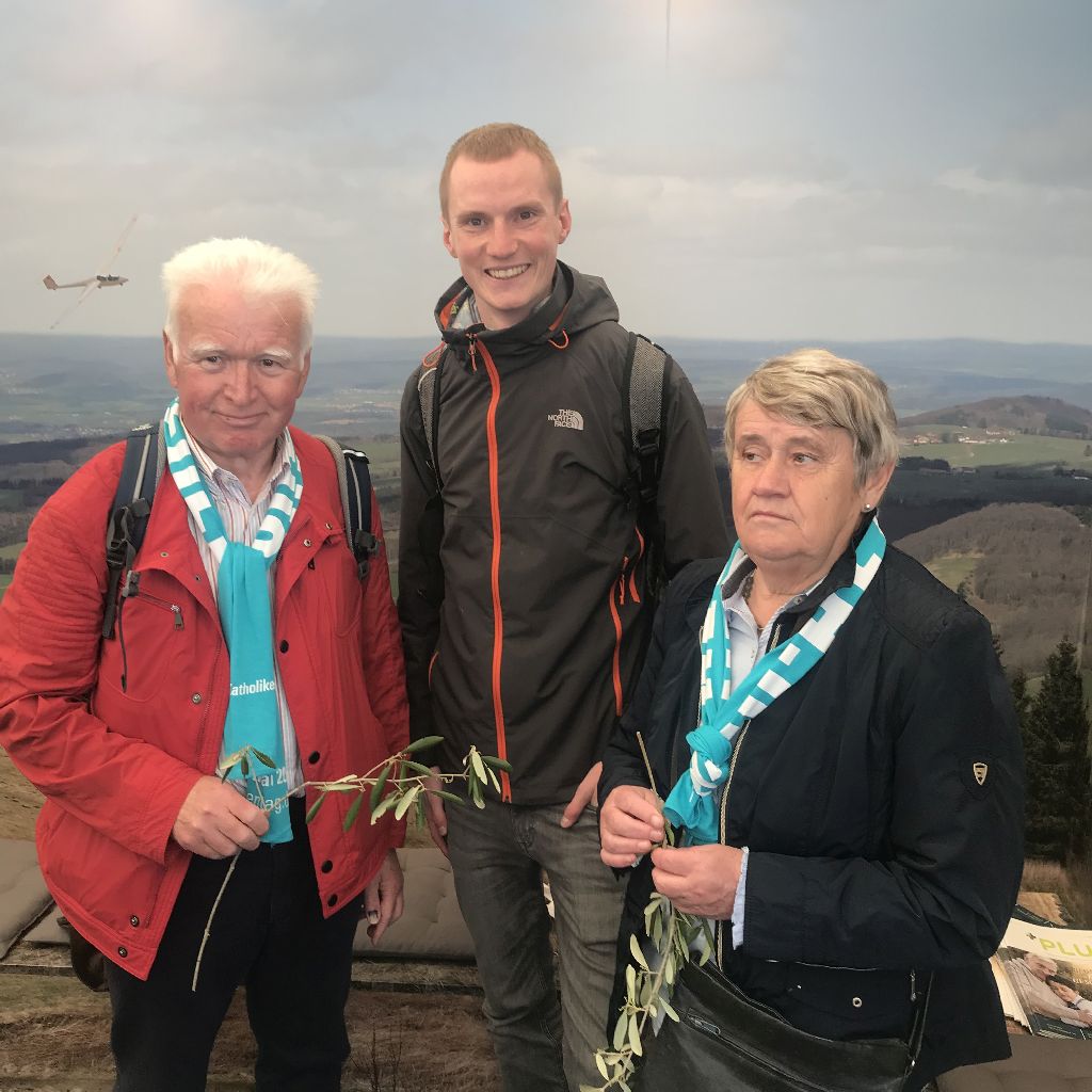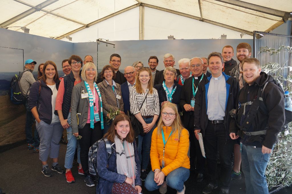 Der Besuch zeigte uns die gewaltige Vielfalt an Gruppen, Initiativen und Bewegungen auf, die sich alle der Verkündigung der Frohen Botschaft in Deutschland und der ganzen Welt verschrieben haben. Man trifft und sieht ganz viele Menschen und tauscht sich mit ihnen aus. Einer der Höhepunkte war der Besuch auf dem Bistumsstand unseres Bistums Fulda, wo wir das Glück hatten, dass unser Bischof Heinz-Josef Algermissen, Weihbischof Karlheinz Dietz, der Leiter des Seelsorgeamtes Thomas Renze und die kfd-Diözesanvorsitzende Bettina Faber Ruffin gerade da waren. Wir trafen Pater Jonas aus dem Heiligen Land, Pater Jonas ist der Taufpate unseres Pfarrers Karl-Peter Aul - der sich sehr über unseren Besuch freute und uns viele Grüße mitgab. Sehen Sie hier Impressionen davon: