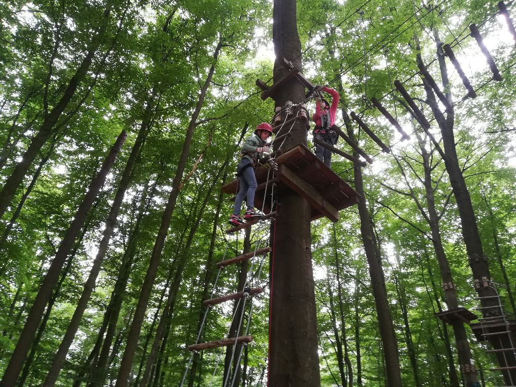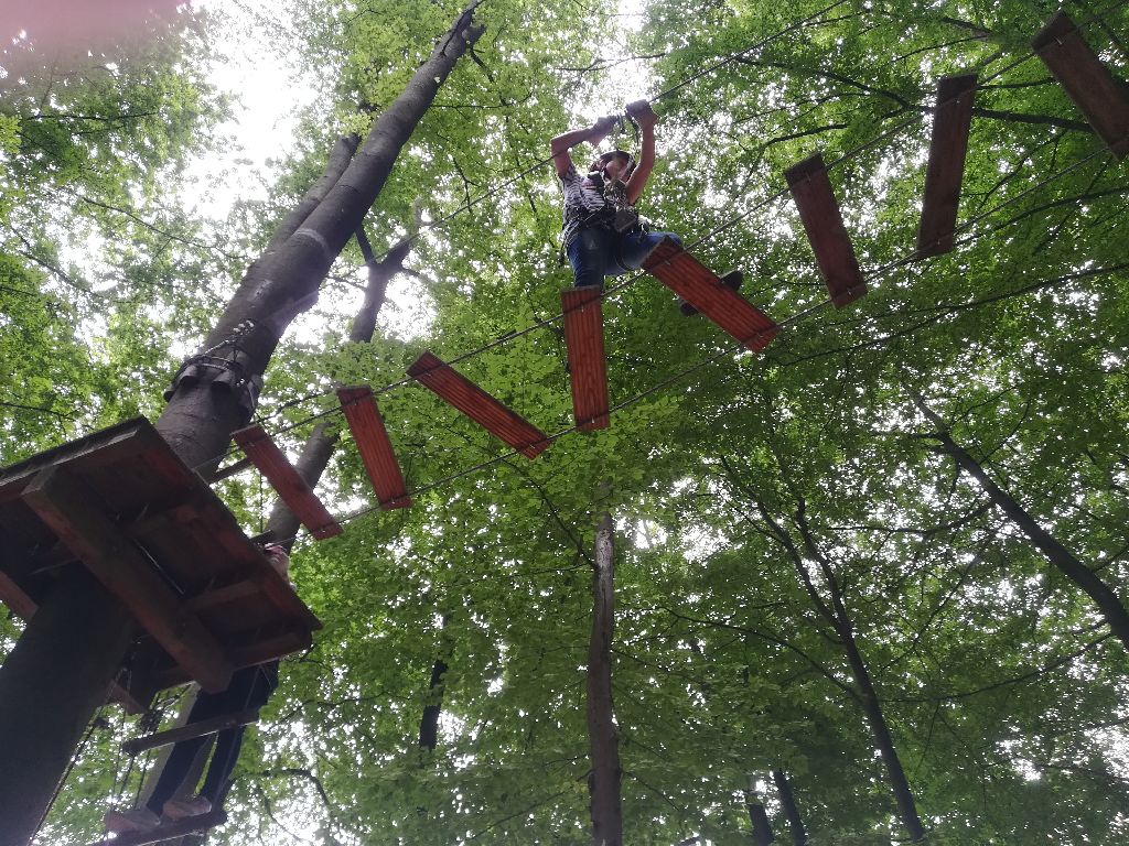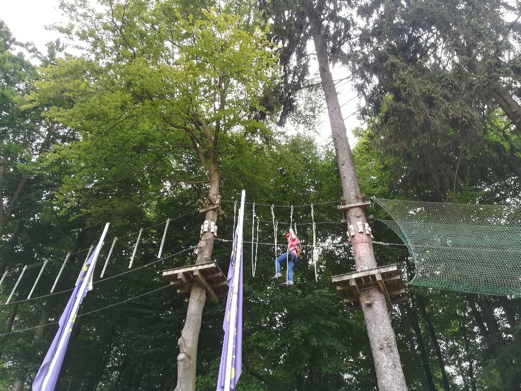 Nach einer Einweisung ging es gleich los. Mitten im Wald warteten über 100 Übungen aus Seilen und Hindernissen darauf, von uns erkletert zu werden. Es gab Parcours mit unterschiedlichen Schwierigkeitesgraden in einer Höhe von 1m - 20m. Die Europaseilbahn mit eine Länge von insgesamt 800 m ist das absolute Highlight des Kletterwalds.