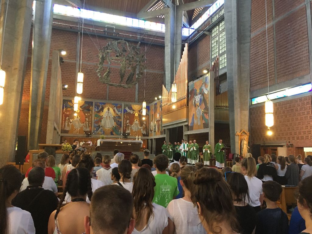 "Nach einer guten Busfahrt kamen wir am Mittag in Rom an, konnten einen ersten Gang in der Hitze zum Petersdom machen. Danach haben wir mit den 550 Minis aus dem Bistum Fulda die Sonntagsmesse gefeiert.“
