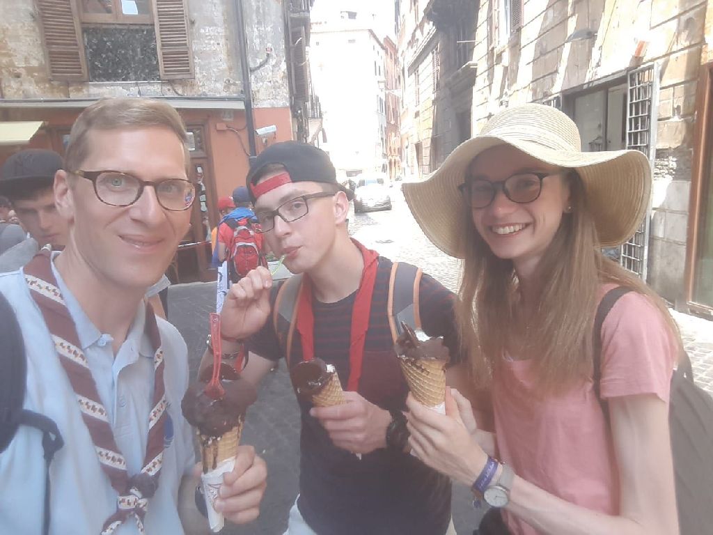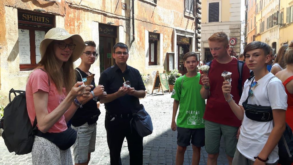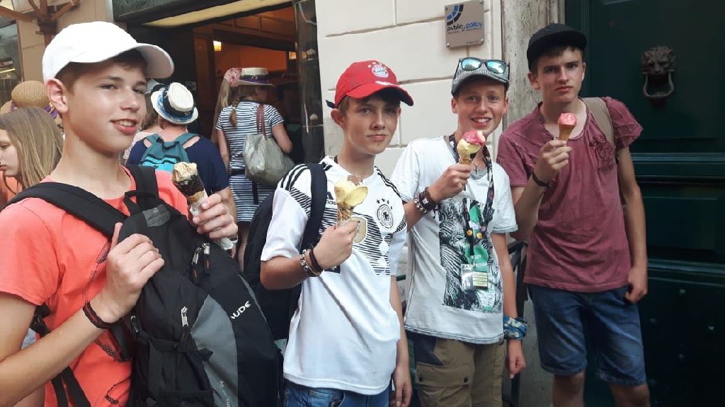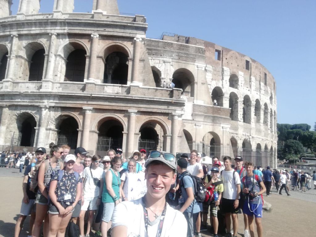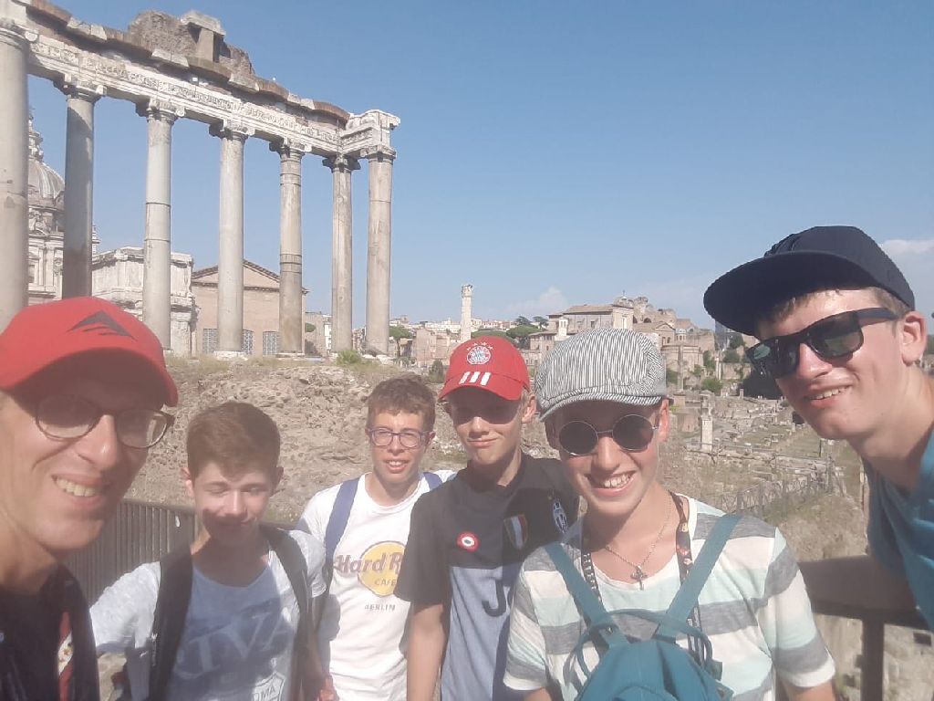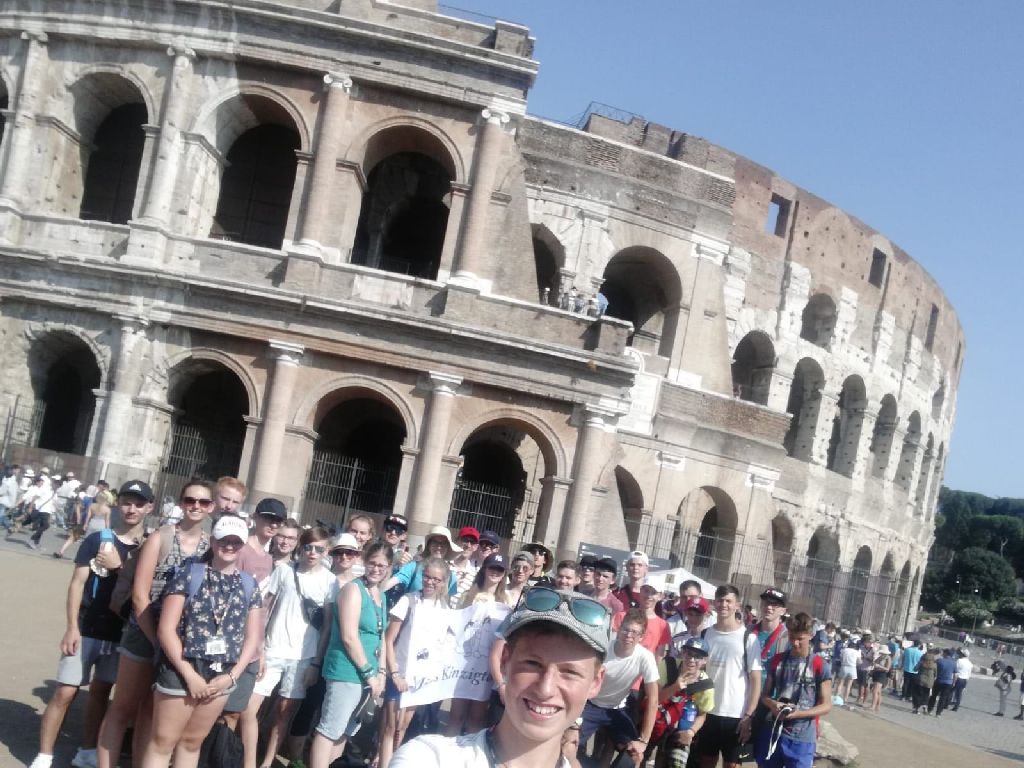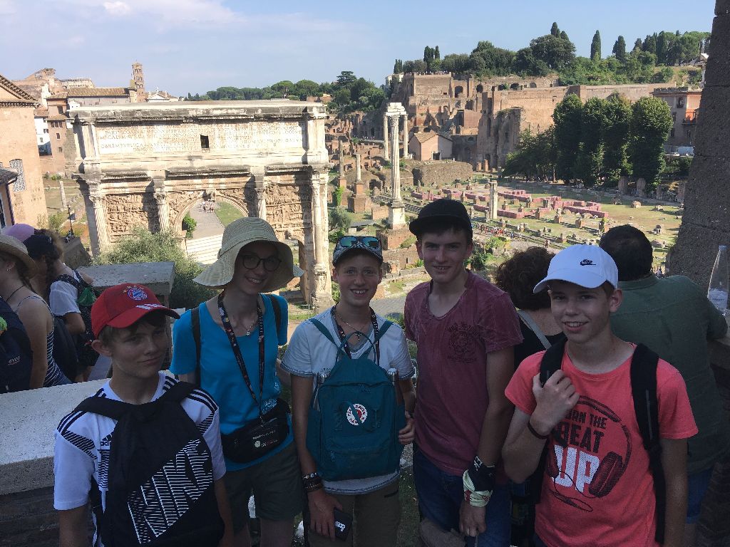 "Gestern konnten wir uns auf erste Besichtigungen in Rom begeben und haben viele Kilometer zu Fuß zurücklegt und natürlich vieles gesehen. Wir waren beeindruckt von dem Antiken Rom, dem Kolosseum und Forum Romanum und genauso schön war der Besuch in der päpstlichen Lateranbasilika.