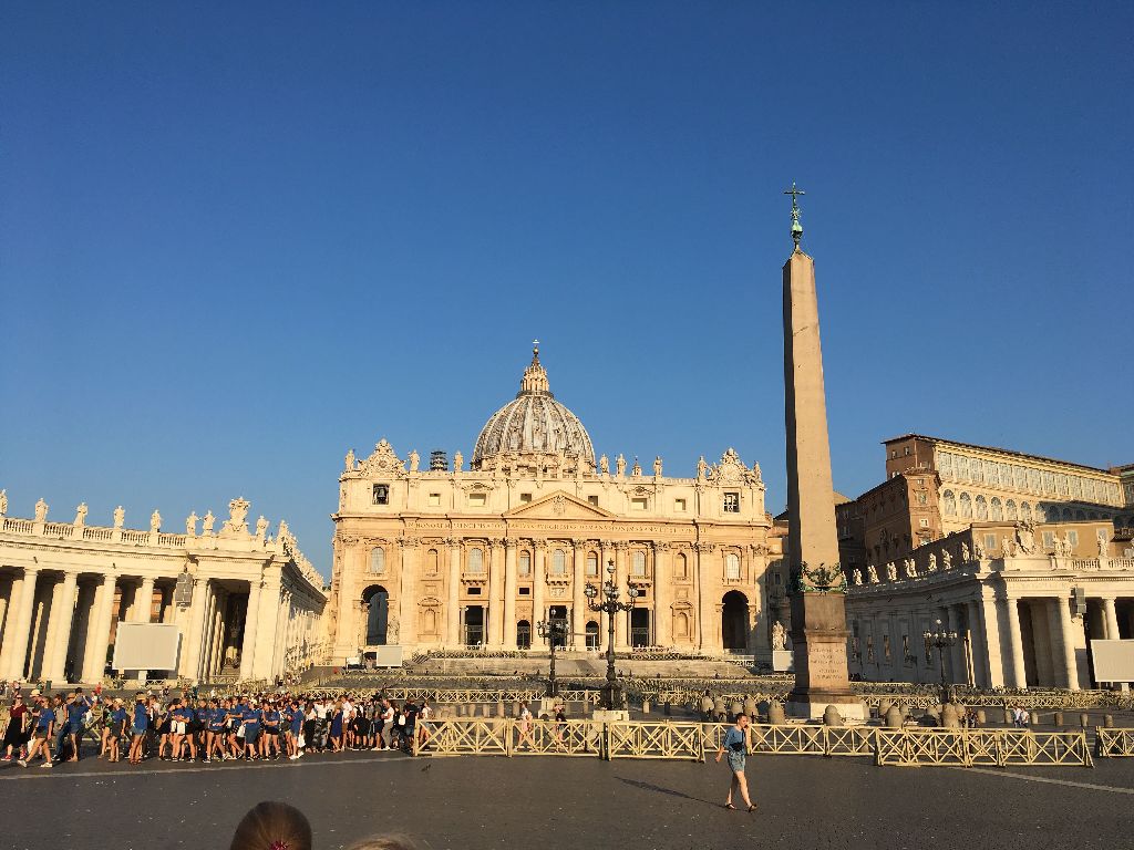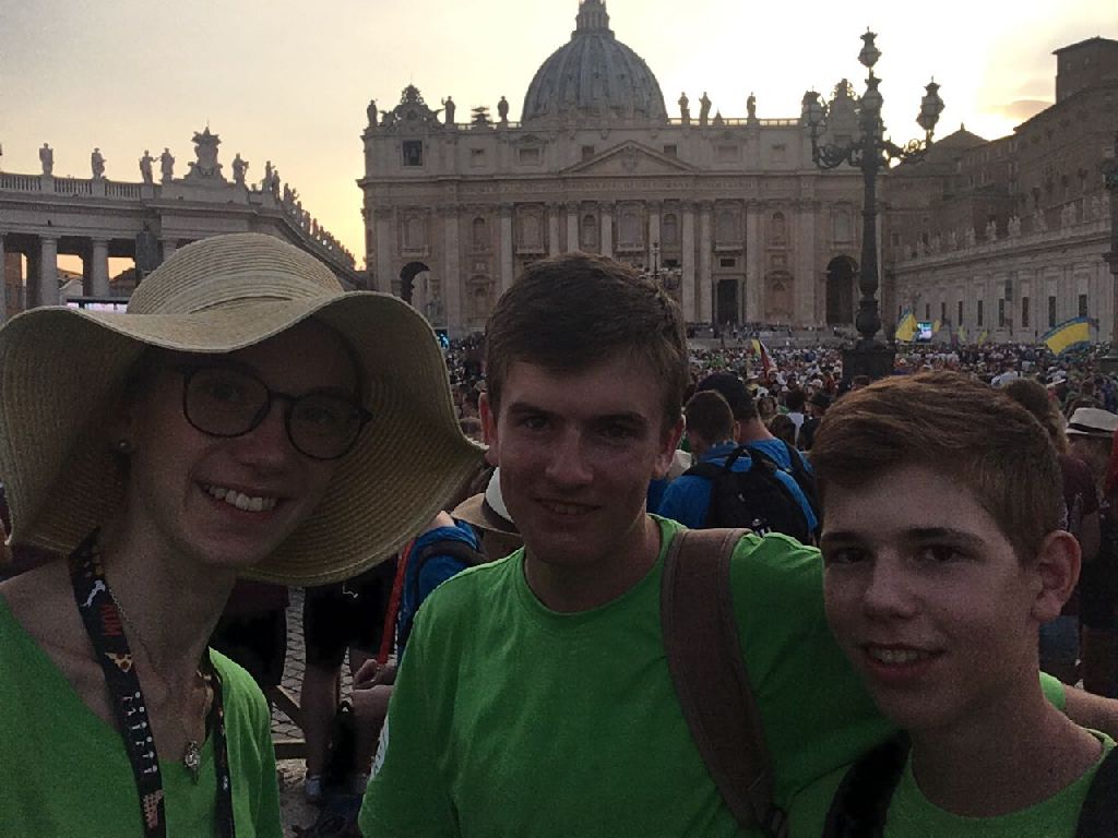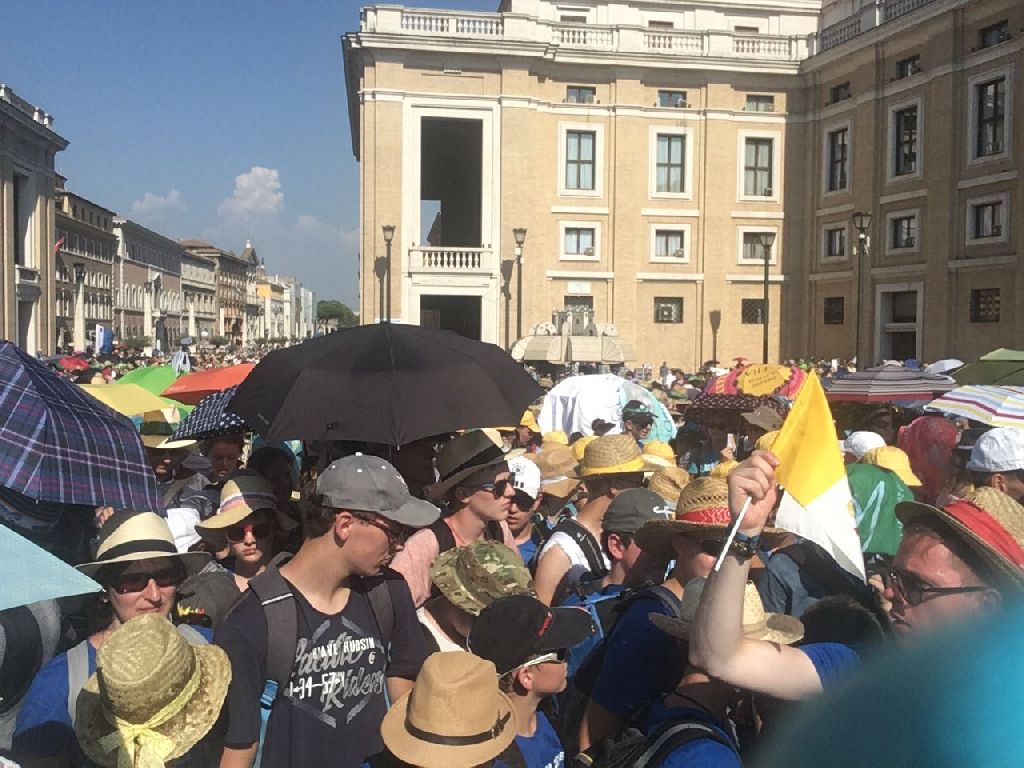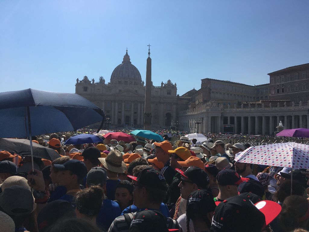Heute war ein besonders anstrengender Tag, nachdem wir am Vormittag in Santa Maria Maggiore waren und wieder einiges von der Stadt sehen konnten, ging es nach der gemeinsam Hl. Messe auf den Petersplatz. Dort mussten wir sehr lange in der Hitze der Mittagssonne anstehen. Nach 3 Stunden waren wir endlich auf dem Platz und nahmen mit viel Freude an der Audienz mit Papst Franziskus teil. Ein Höhepunkt war natürlich auch, als er über den Petersplatz an uns vorbei fuhr."