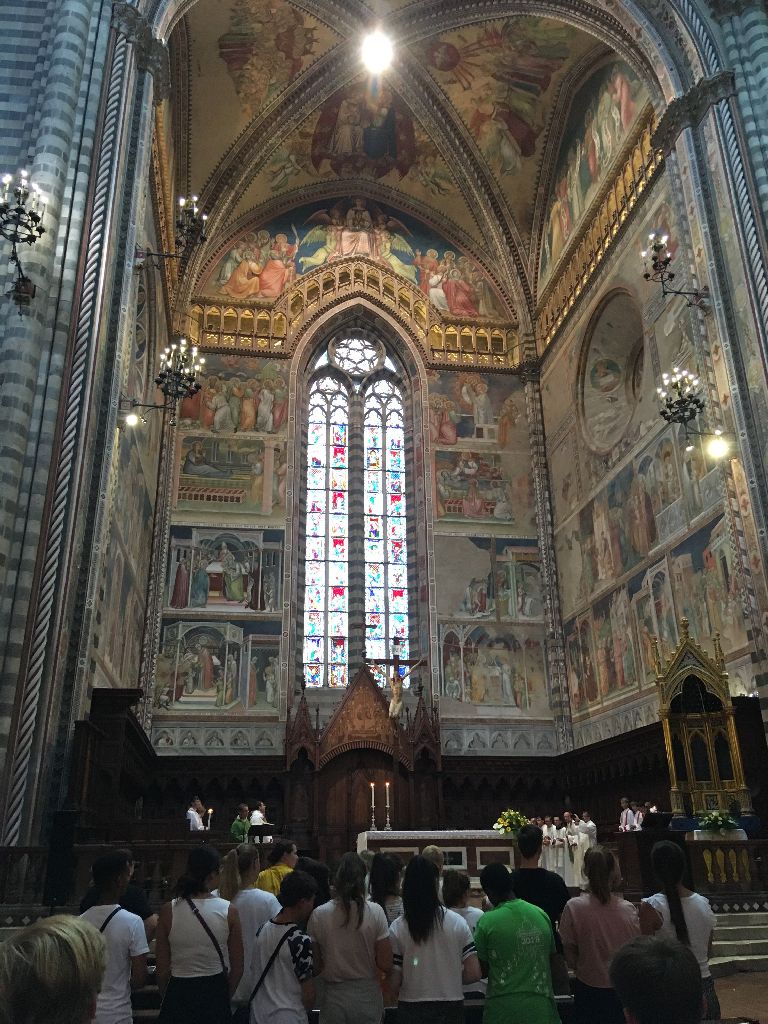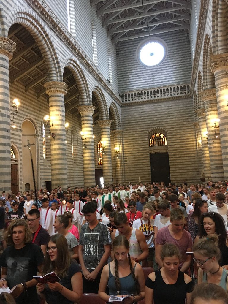 "Heute hieß es für uns leider Abschied nehmen von der Ewigen Stadt. Nach einem letzten Gang durch die Gassen Roms und einem letzten Eis fuhren wir nach Orvieto. In Orvieto feierten wir, alle Minis aus dem Bistum Fulda, gemeinsam eine Abschlussmesse und danach machten wir uns auf die Heimreise."