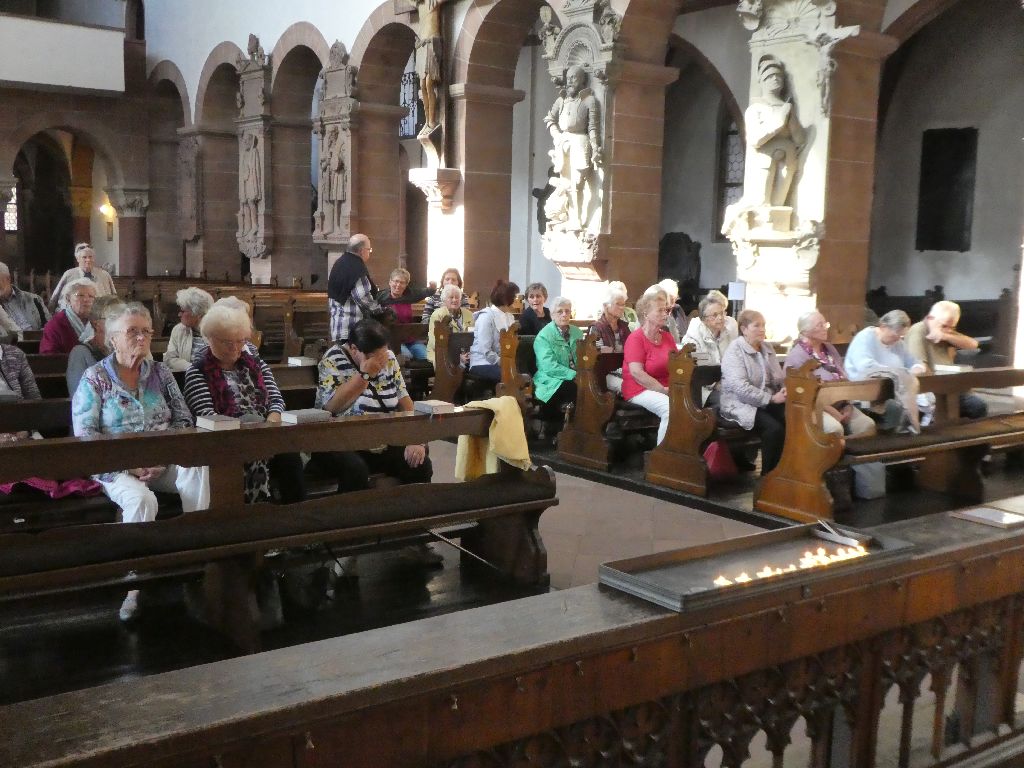 Bei herrlichem Herbstwetter fuhr ca. 35 Senioren aus Wirtheim und Kassel mit dem Bus nach Aschaffenburg in die Stiftskirche St. Peter und Alexander, dort stellt uns Pfarrer Martin Heim die lange Geschichte der Kirche und Aschaffenburg vor.