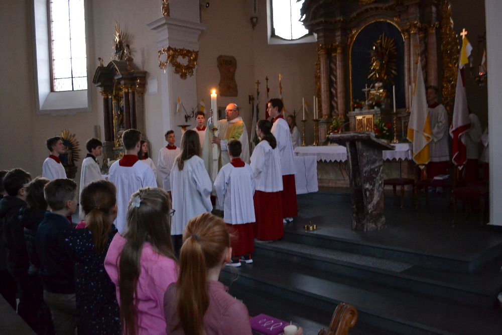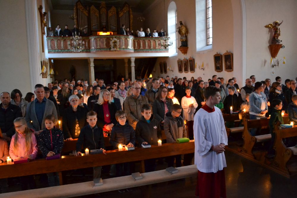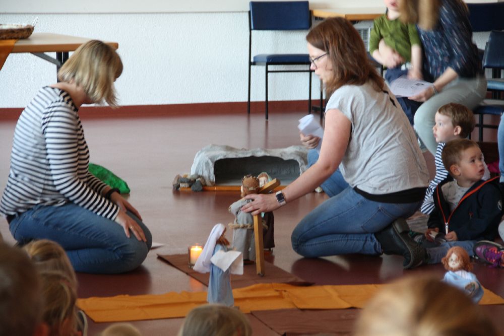Am Karfreitag feierten über 40 Kleinkinder aus Kassel und Wirtheim mit Ihren Eltern und Geschwister eine Ökumenische Karfreitagsfeier für Kleinkinder in unserem Pfarrheim. Nachdem den Kindern symbolisch die Hände gewaschen wurden, gab es Brot und Traubensaft. Danach wurde der Kreuzweg Jesu mit Puppen dargestellt. Jedes Kind durfte sich eine Narzisse als Zeichen der Auferstehung Jesu mit nach Hause nehmen.