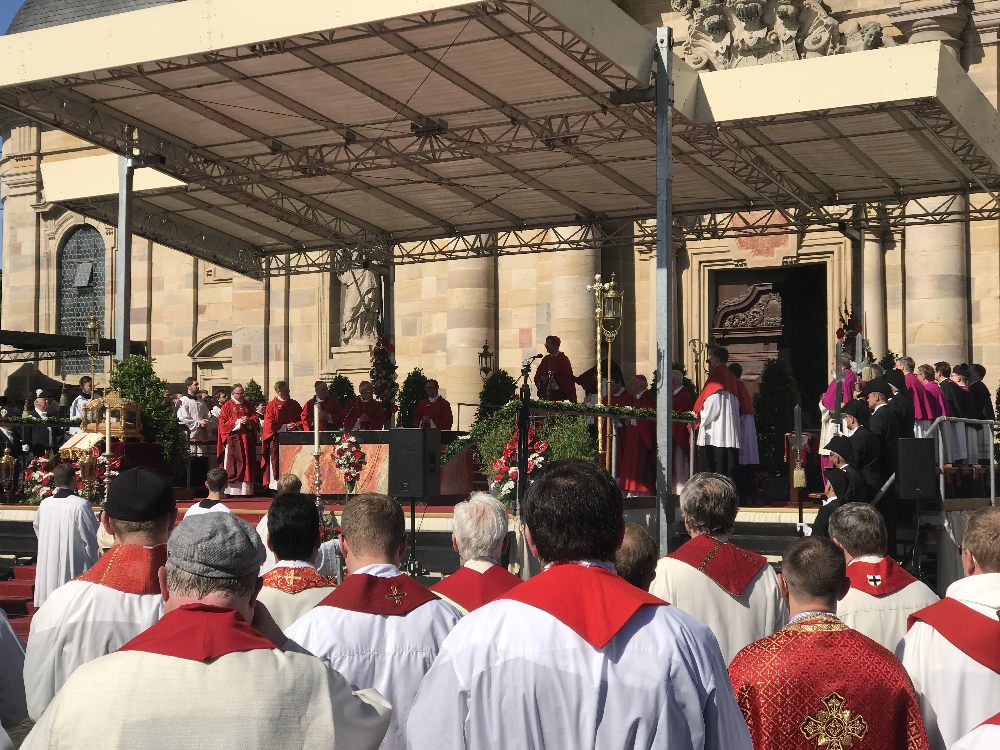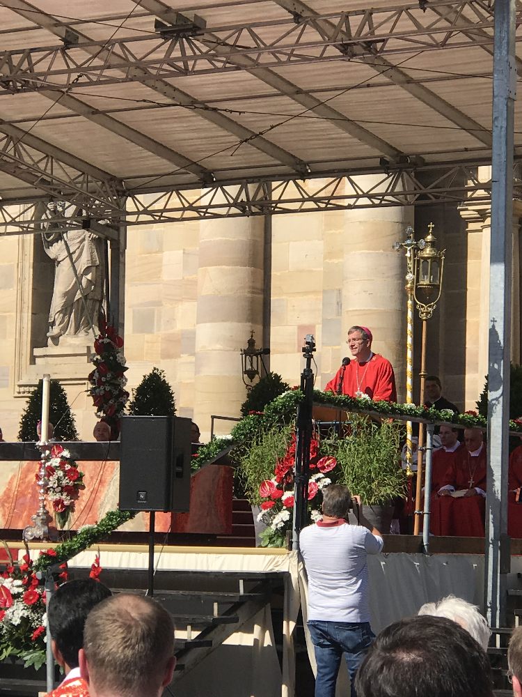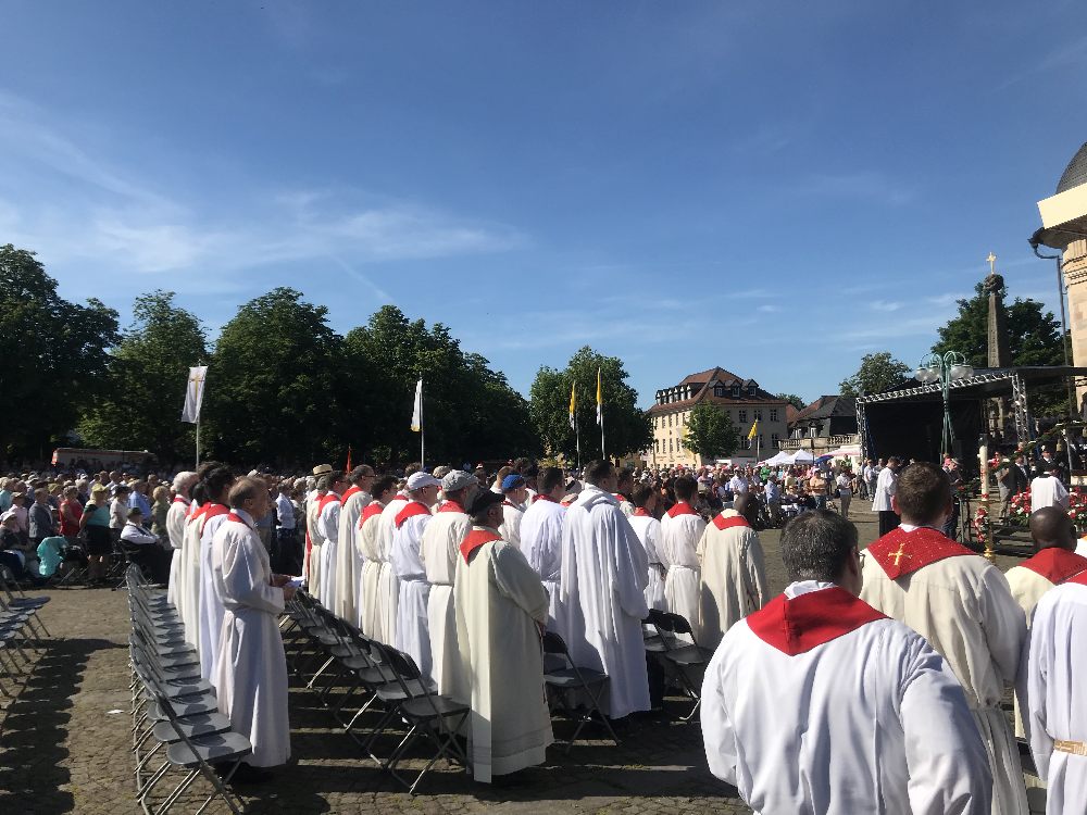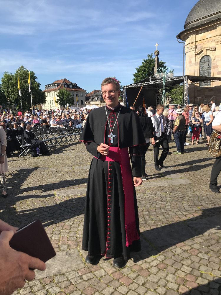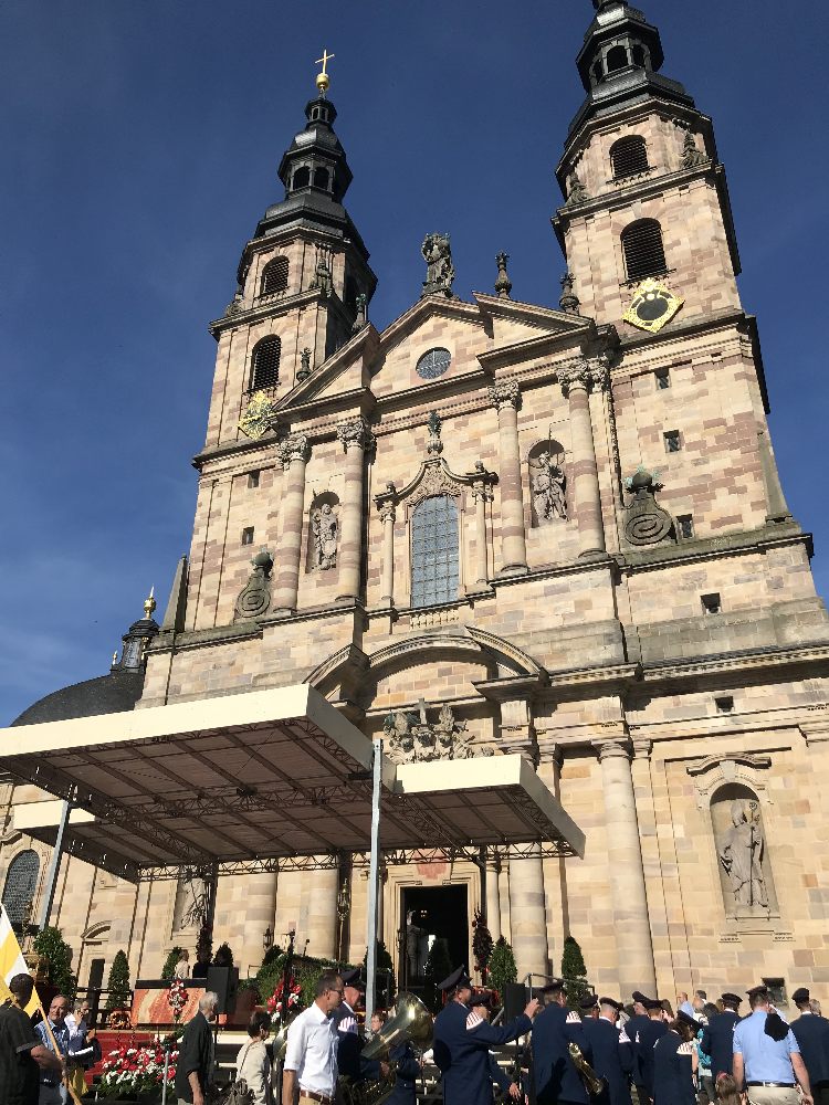 Mit über 8.000 Wallfahrern von nah und fern feierte der neue Fuldaer Bischof Dr. Michael Gerber sein erstes Bonifatiusfest auf dem Domplatz - St. Johannes Nepomuk war stark vertreten.