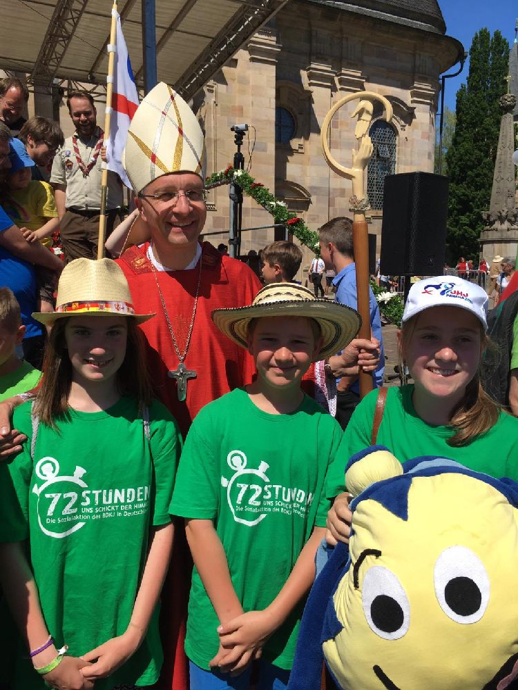 In seiner Festpredigt dankte der Bischof für das große Engagement junger Christen in den Projekten der 72-Stunden-Aktion: „Ihr habt uns in diesen vergangenen Tagen etwas vorgelebt, was für die Fragen nach dem Zusammenhalt in Kirche und Gesellschaft von entscheidender Bedeutung ist.“