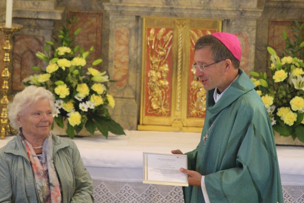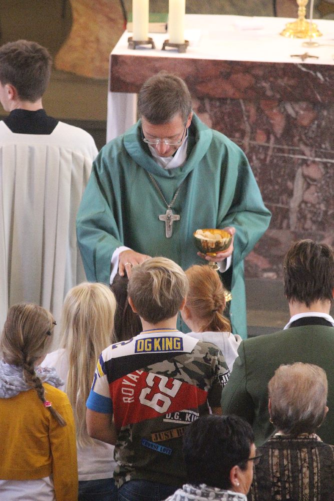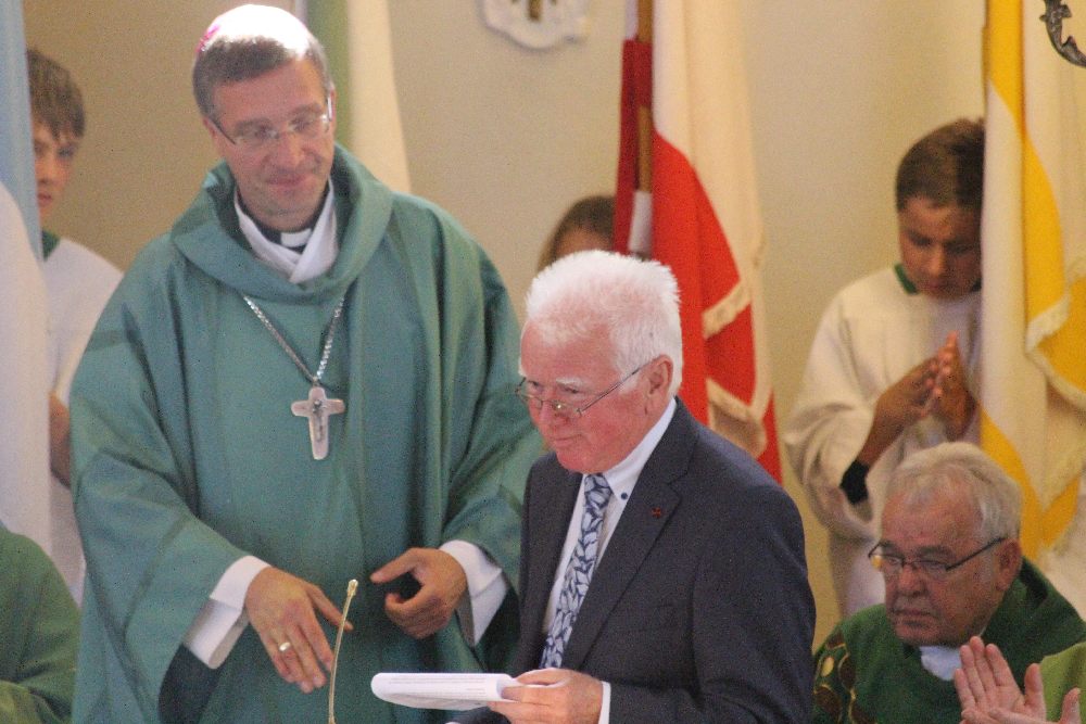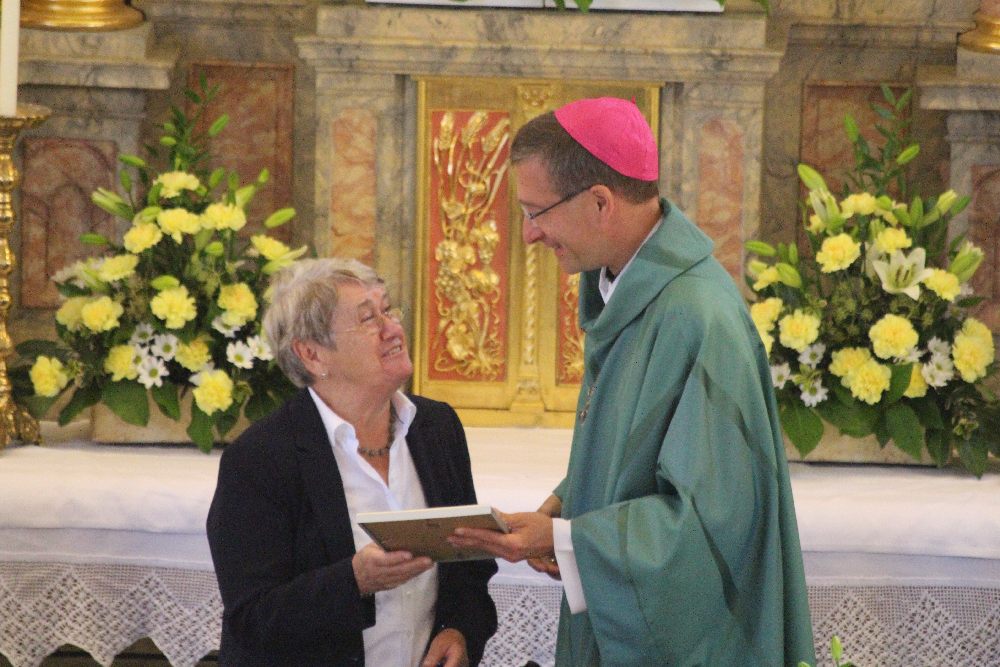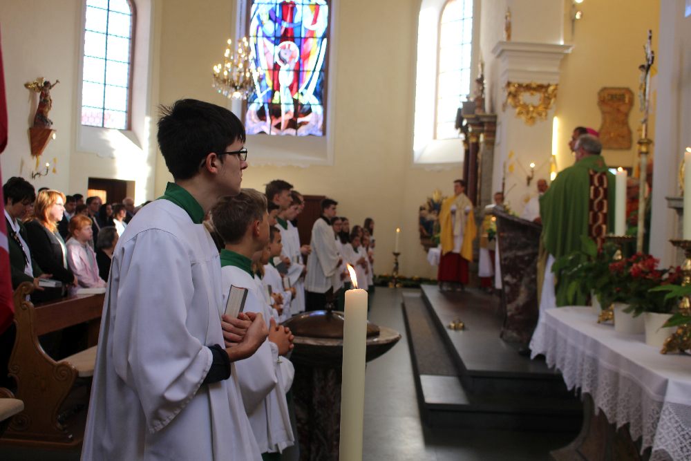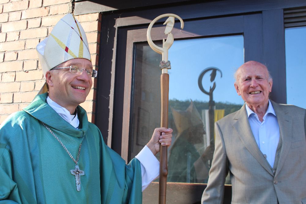 Der Pontifikalamt mit Bischof Dr. Michael Gerber war der Höhepunkt unseres Jubiläumsjahres. Bischof Michael wurde im Pfarrheim von Pfarrer Aul und den Messdienern empfangen. Dort informierte er sich über das 72-Stunden Projekt unserer Jugendlichen. Im Anschluss zog er in einer kleinen Prozession mit musikalischer Begleitung des Musikvereins in die Kirche. Schon unterwegs nutzte er jede Gelegenheit mit Jung und Alt kurz ins Gespräch zu kommen. In der vollen Kirche feierte er mit uns feierlich Eucharistie. In seiner Predigt beeindruckte er u.a. durch seine Kenntnisse über unser Kassel. Unser Pfarrer Karl-Peter Aul hat ihn nach dem Einzug in die Kirche kurz begrüßt und der Sprecher des Pfarrgemeinderates Richard Pfeifer begrüßte ihn zum Abschluss des Gottesdienstes im Namen der ganzen Gemeinde, der kirchlichen Gremien und aller Vereine. Lektor Horst Bender von der evangelischen Emmaus-Kirche sprach ein Grußwort. Den Abschluss in der Kirche bildete die Ehrung von langjährig engagierten Mitgliedern von St. Johannes Nepomuk: Barbara Preus, Mariechen Reitz und Marita Pfeifer als Lektorinnen; Bernhard Sinsel als Küster, Ursula Grob und Karl Schum als Organisten; Richard Pfeifer als Kommunionhelfer.