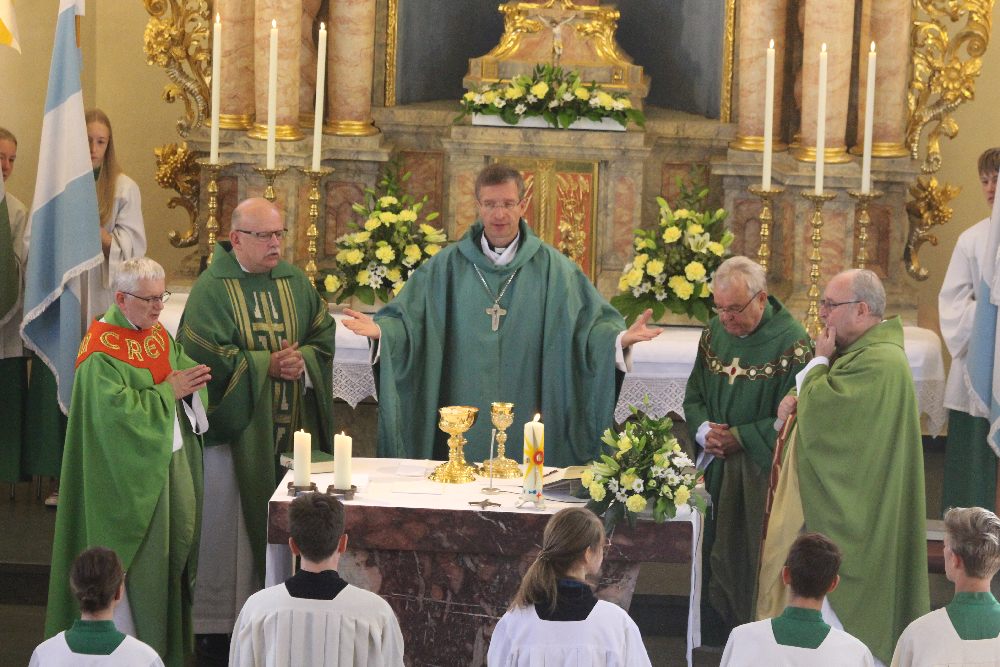 Wir hatten hohen Besuch, unser neuer Bischof Dr. Michael Gerber feierte in unserer Pfarrkirche St. Johannes Nepomuk mit uns einen Festgottesdienst zum Gedenken an die Erhebung zur selbständigen Pfarrei vor 100 Jahren.
