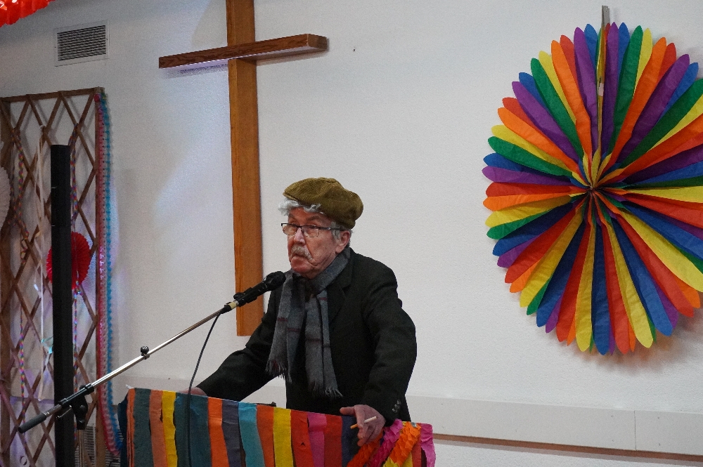 Trotzdem das Pfarrer Karl-Peter Aul und unseren Musikus Matthias Habermann die Grippe außer Gefecht gesetzt hat, war es ein froher und lustiger Abend. Die Akteure waren Engelbert als Musikus, Christina Walk führte durchs Programm. Die Programmpunkte waren: Eine Eingeplakte - Judith Grob, Eine Lottogewinnerin - Christina Walk und Corina Fleckenstein, Besuch aus Frankreich - Marita Peter, Namenstag - Reinhard Wagner, Wir treten auf - Corina und Joachim Fleckenstein, Stromlos - Gerda Kleinfelder und Rainer Faß und zum Abschluß noch ein Besuch aus Russland - Reinhard Wagner.