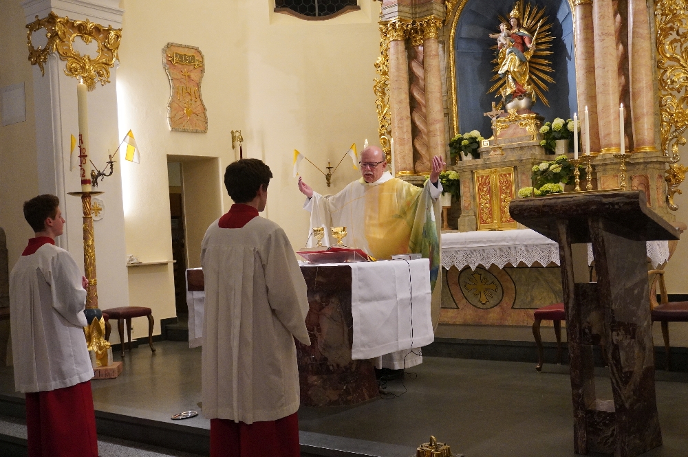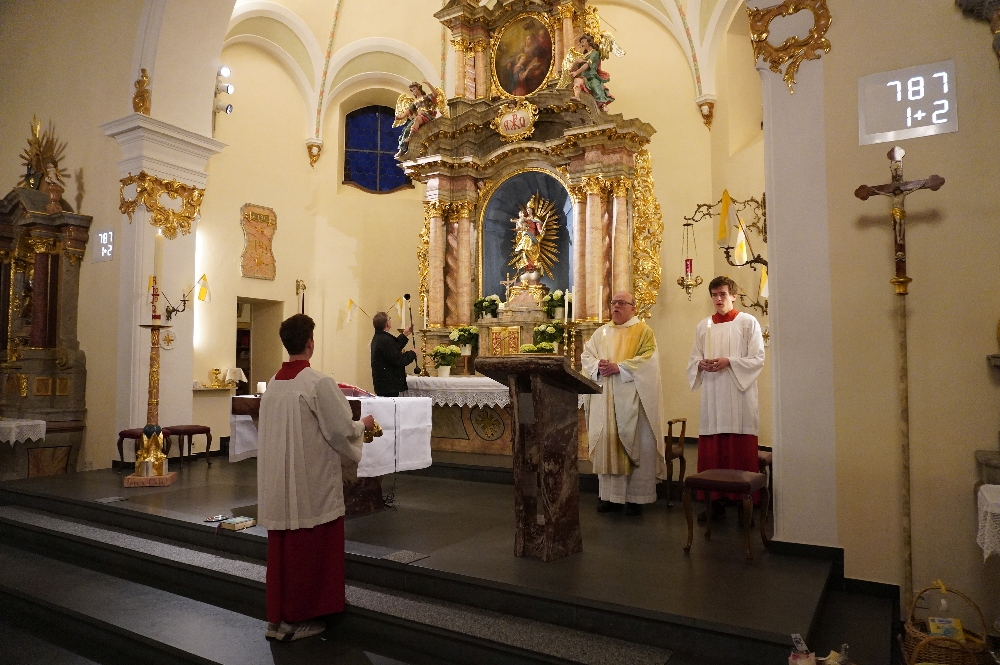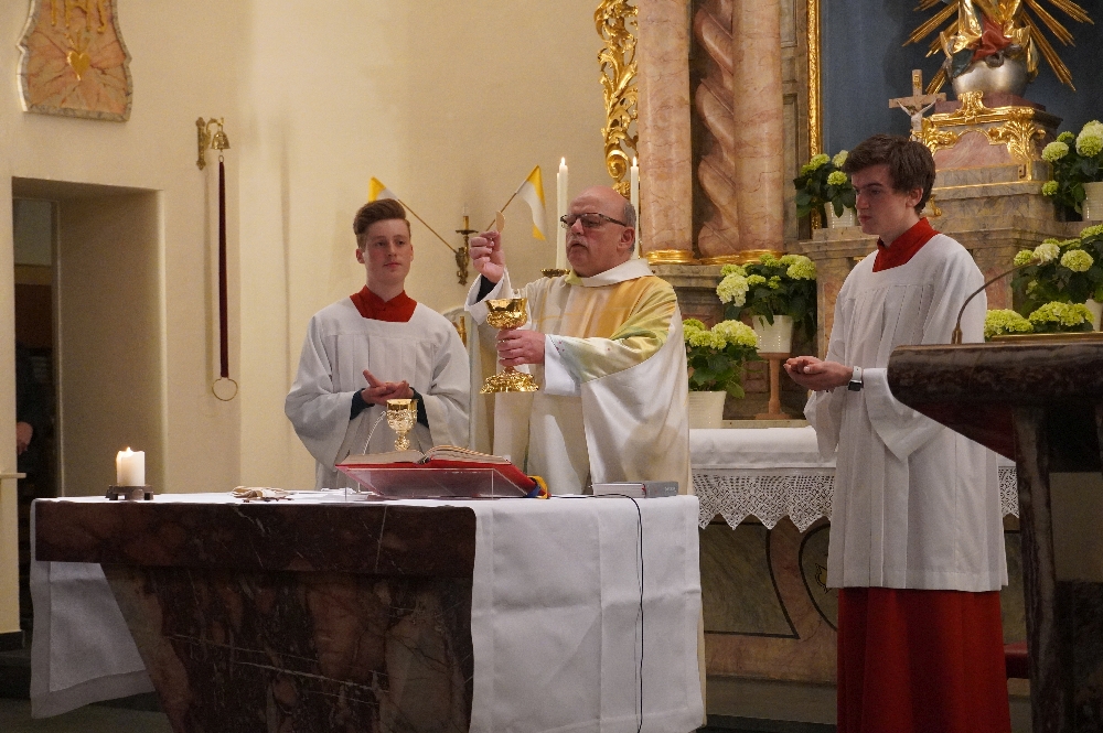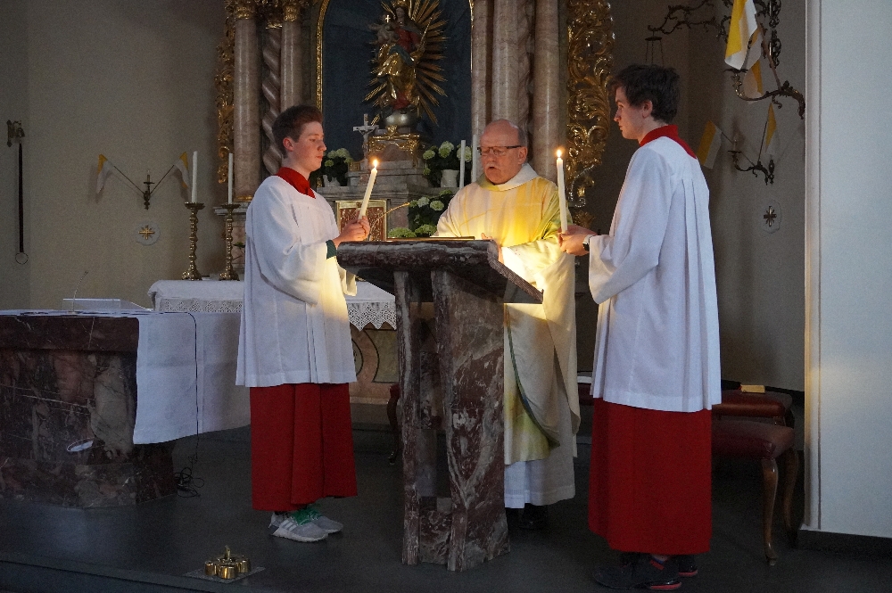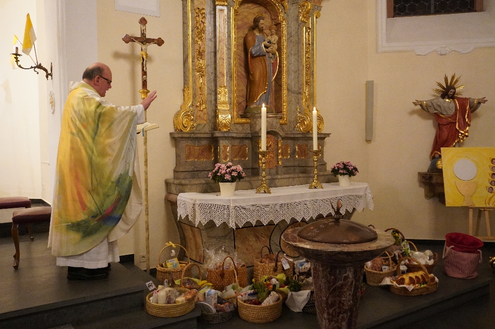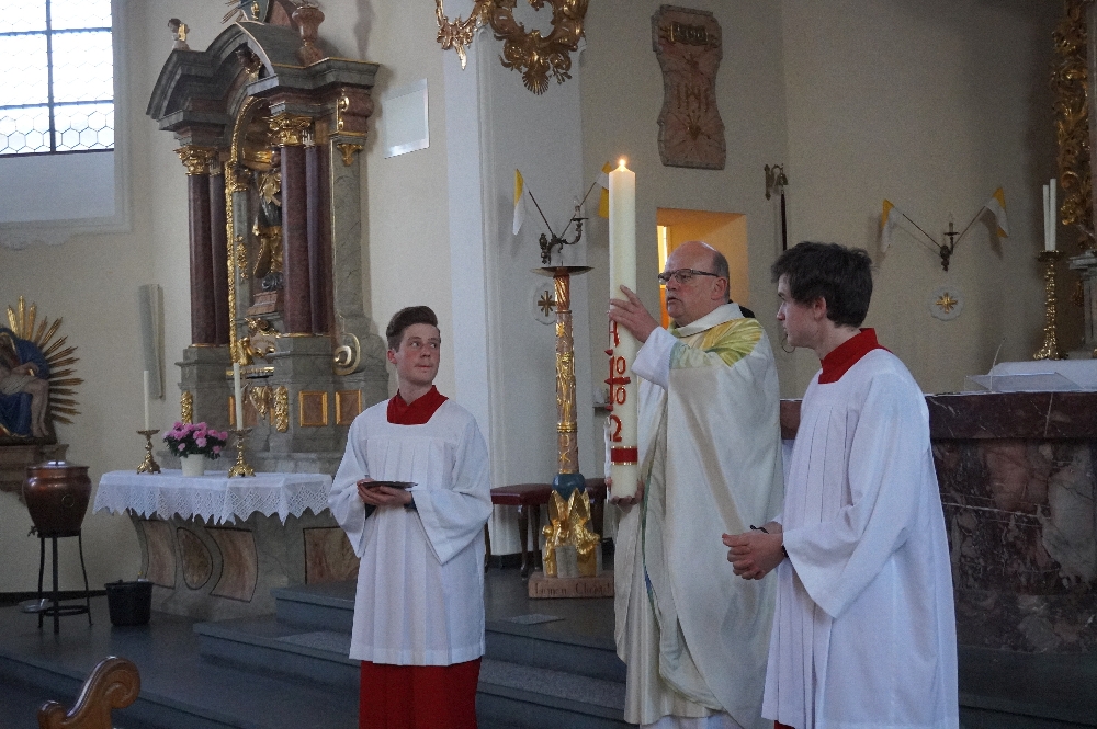 Als Folge der Coronavirus-Pandemie können wir in diesem Jahr das Osterfest leider nicht in gemeinsamen Gottesdiensten feiern. Damit fehlt uns etwas ganz Zentrales für unser Leben als Pfarrgemeinde. Vertrauen wir aber fest darauf, dass unser Herrgott in unserer Mitte ist, besonders in unserem Beten und auch im Mitfeiern der Gottesdienste über Fernsehen und andere Medien, und uns die Kraft dazu schenkt, diese schwere Zeit zu meistern.