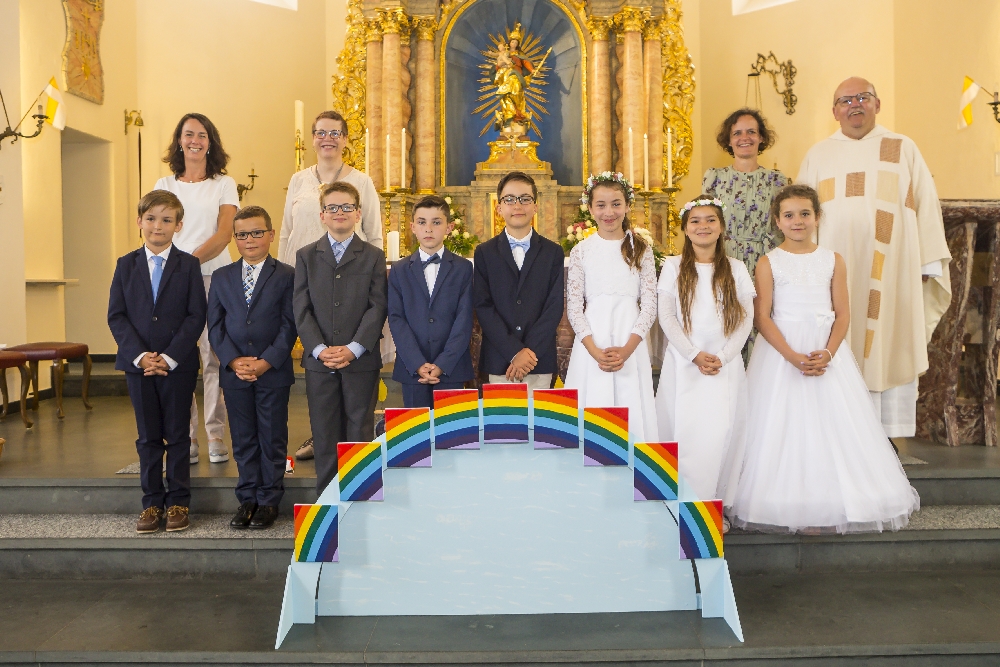 Am Samstag war die Erstkommunionfeier von: Liya Laguardia, Luana Sattler, Sarah-Leonie Waldmann und am Sonntag von: Julius Buch, Nils Lauer, Vincent Thiel, Bastian Weimar, Julius Waitz.