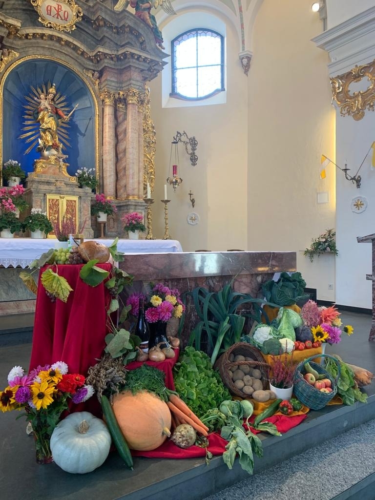 Erntedank bedeutet "Dank feiern" - Einmal im Jahr finden die reichen Gaben der Natur ihren Weg in die christlichen Kirchen. Der Altar ist dann mit farbenfrohen Arrangements an Äpfeln, Kürbissen und Brot geschmückt.
