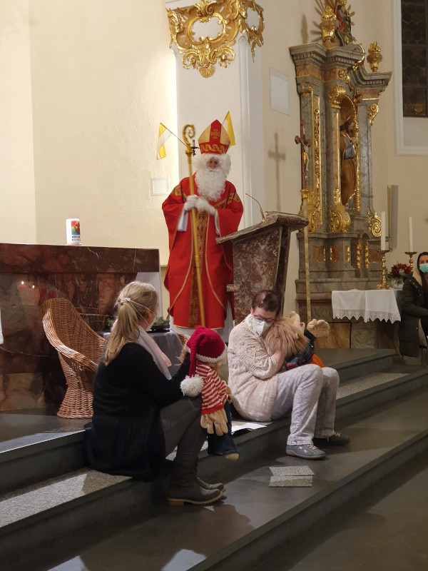 "Lass uns selbst Licht sein für andere", hieß es in einem Gebet, so wie auch zum Bespiel Bischof Nikolaus es war. Bei einer Mitmachgeschichte konnte man von den guten Taten Bischhof Nikolaus´hören. Als Überraschung hat der Nikolaus Willi, Wolli und die Kinder besucht.