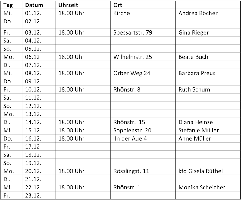 Dieses Jahr wird der Advent als Herbergssuche gestaltet. Wir laden Sie hierzu herzlich ein.