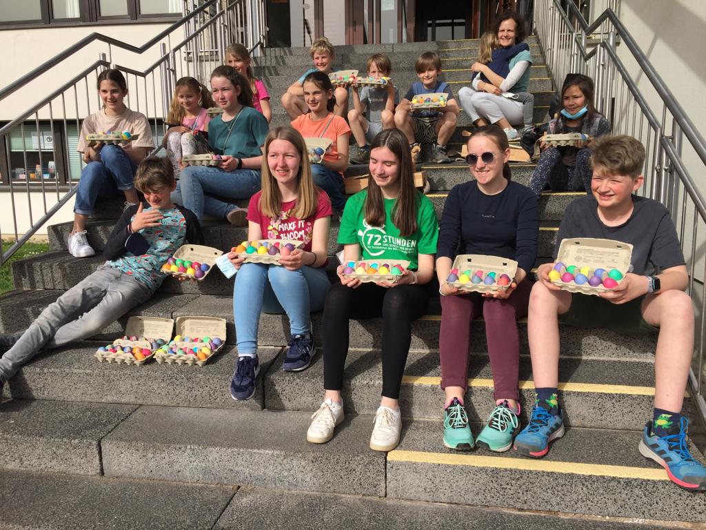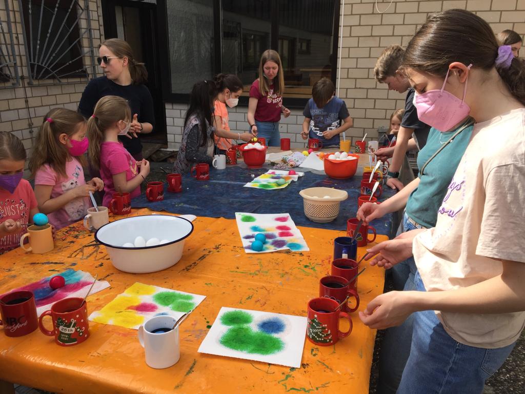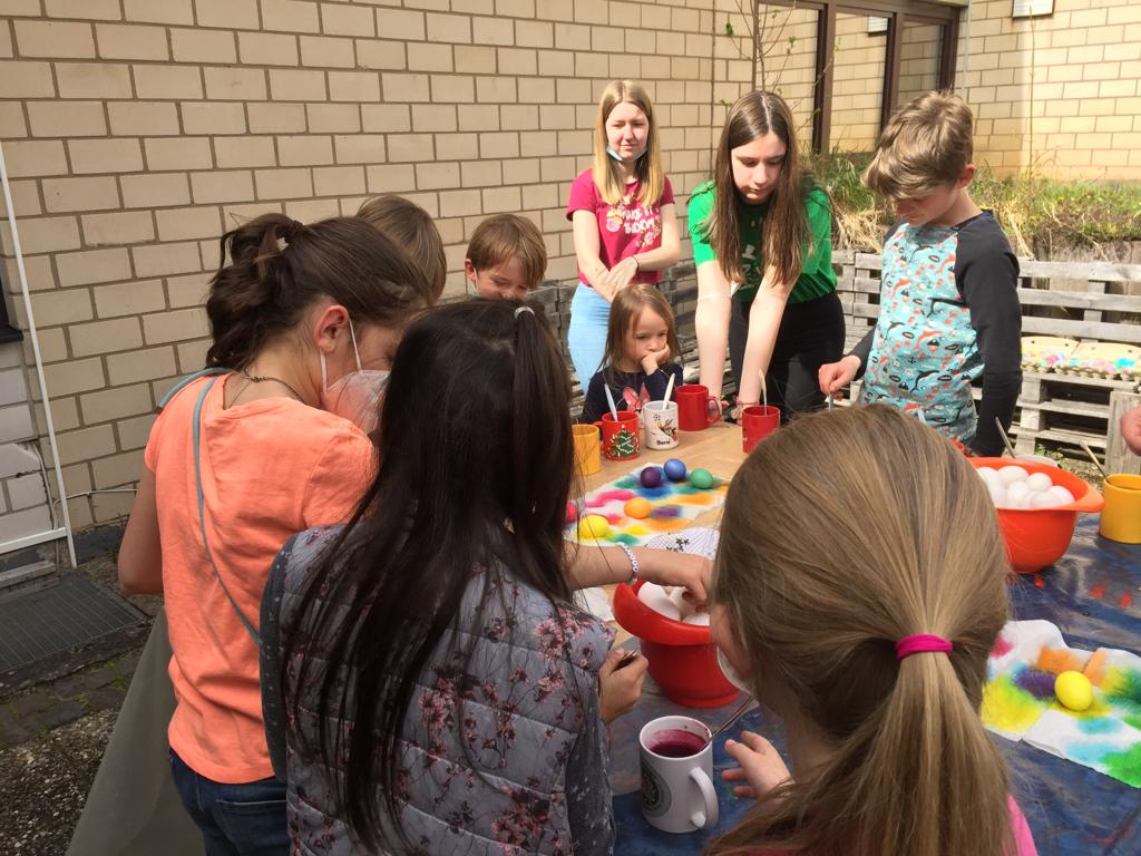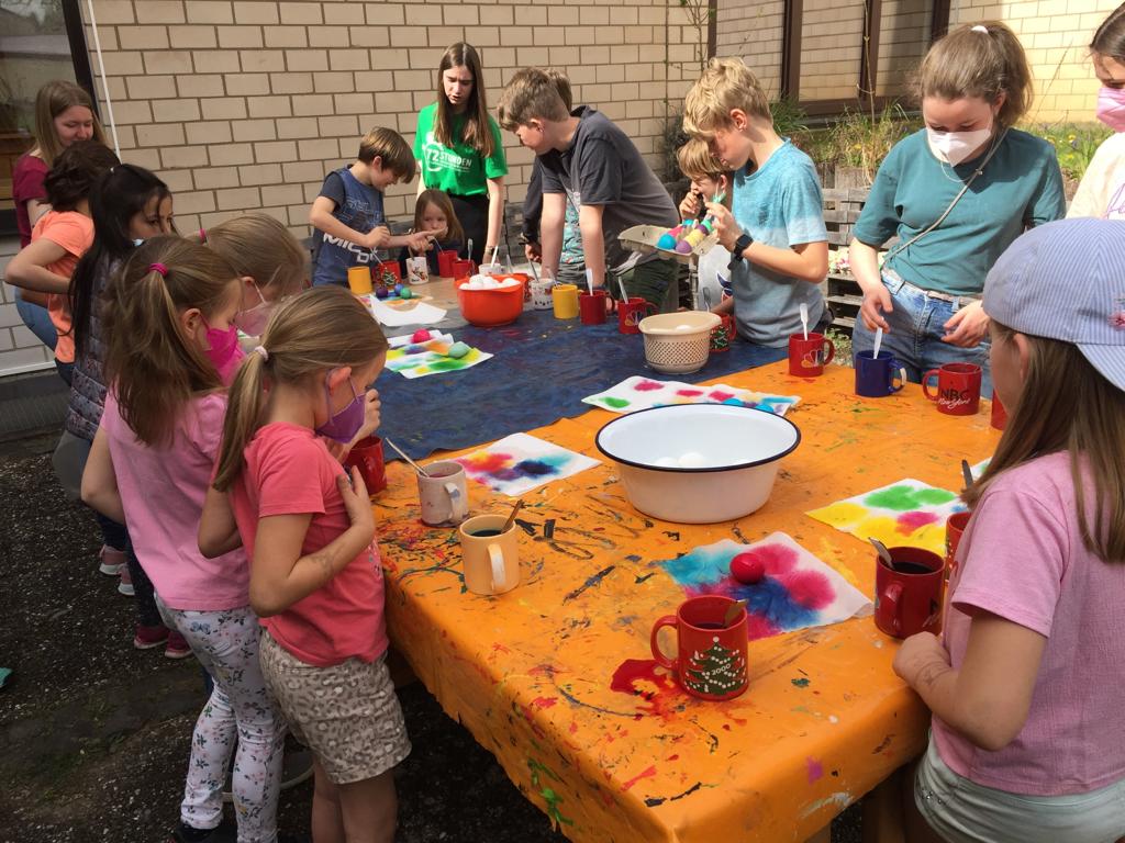 20 Kinder und Jugendliche färbten heute 600 Eier ...