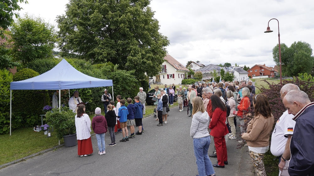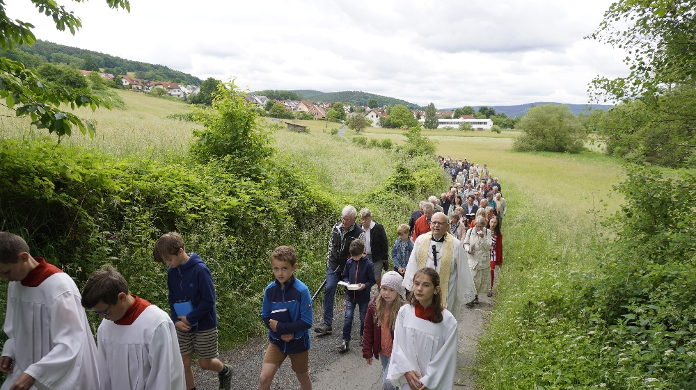 Nach zwei Corona-Jahre konnten wir mit Wirtheim wieder gemeinsam den Himmelfahrtstag am Gemeindezentrum feiern. Mit Flurprozessionen von den jeweiligen Kirchen und halt an drei Altären an denen um Gottes Segen