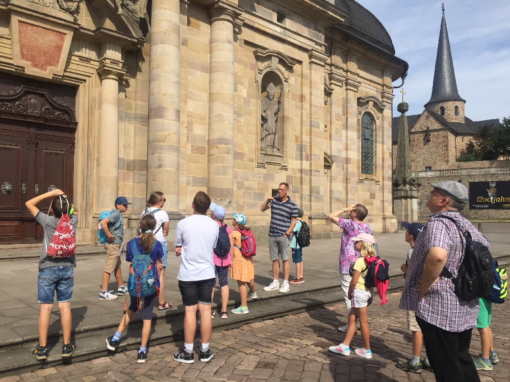 Im Rahmen der Ferienspiele fuhren heute 11 Kinder mit 3 Erwachsene nach Fulda. Es ging bei Sonnenschein zunächst zum Dom. Hier erwartete uns Daniel Stehling für eine Führung.