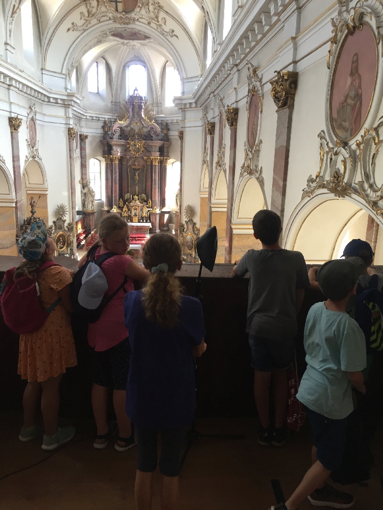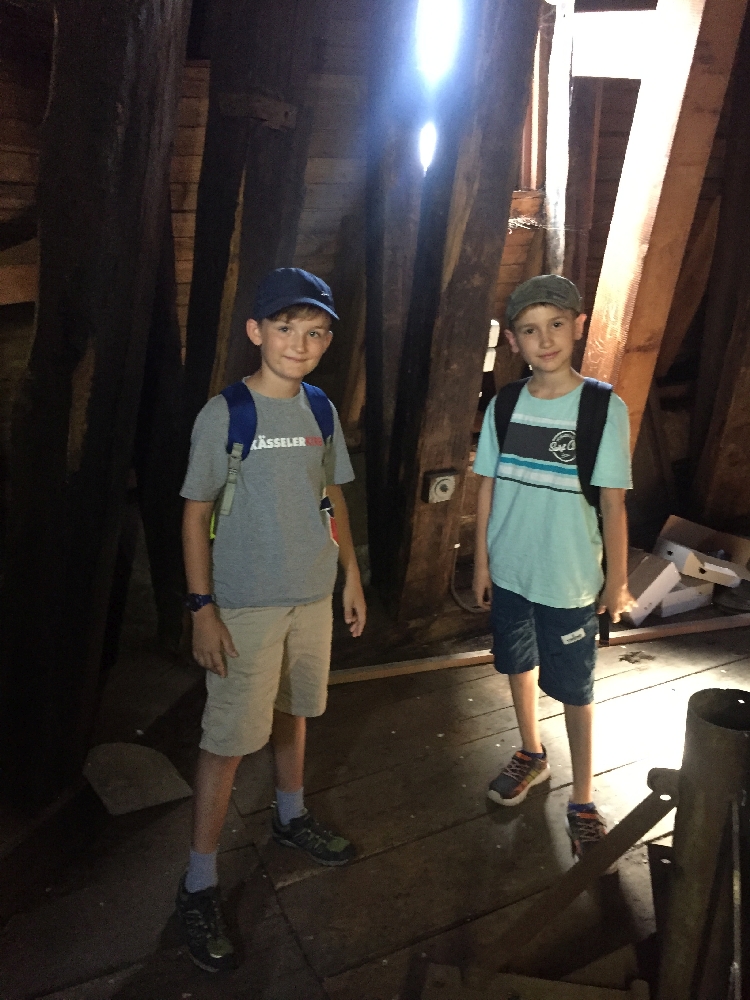 Nach einem geschichtlichen Überblick über die Entstehung des Dom ging es bald in das kühle Gotteshaus mit dem Grab des Hl. Bonifatius. Es wurde uns Vieles kindgerecht gezeigt und erklärt. Wird durften heute sogar in die Sakristei! Anschließend führte uns unser Weg zur Stadtpfarrkirche, in der wir den Turm bestiegen und die ehemalige Turmwächterwohnung besichtigten.