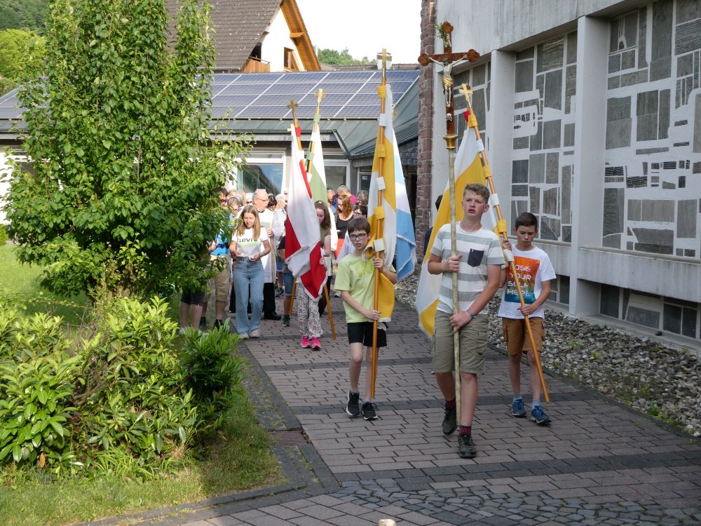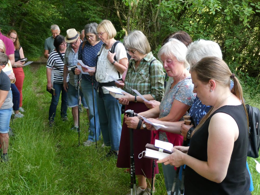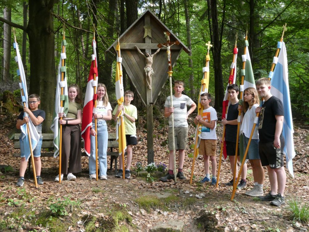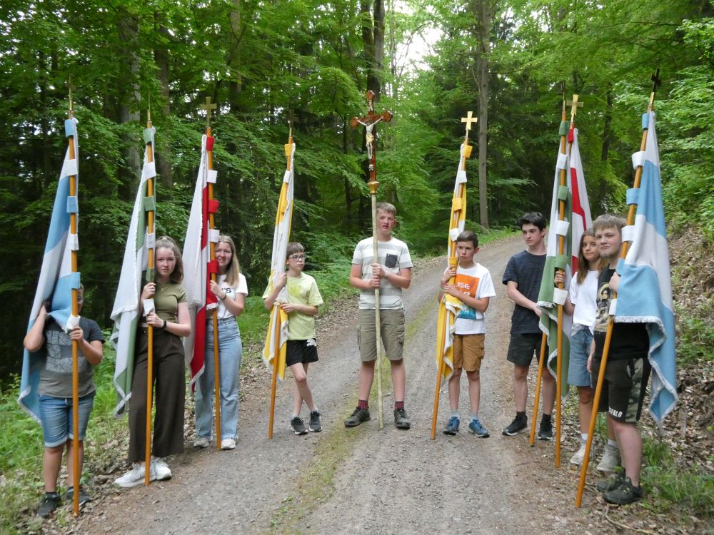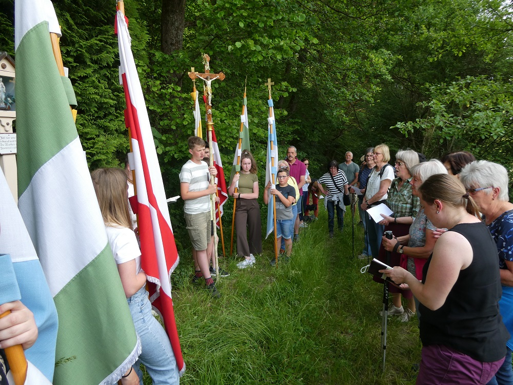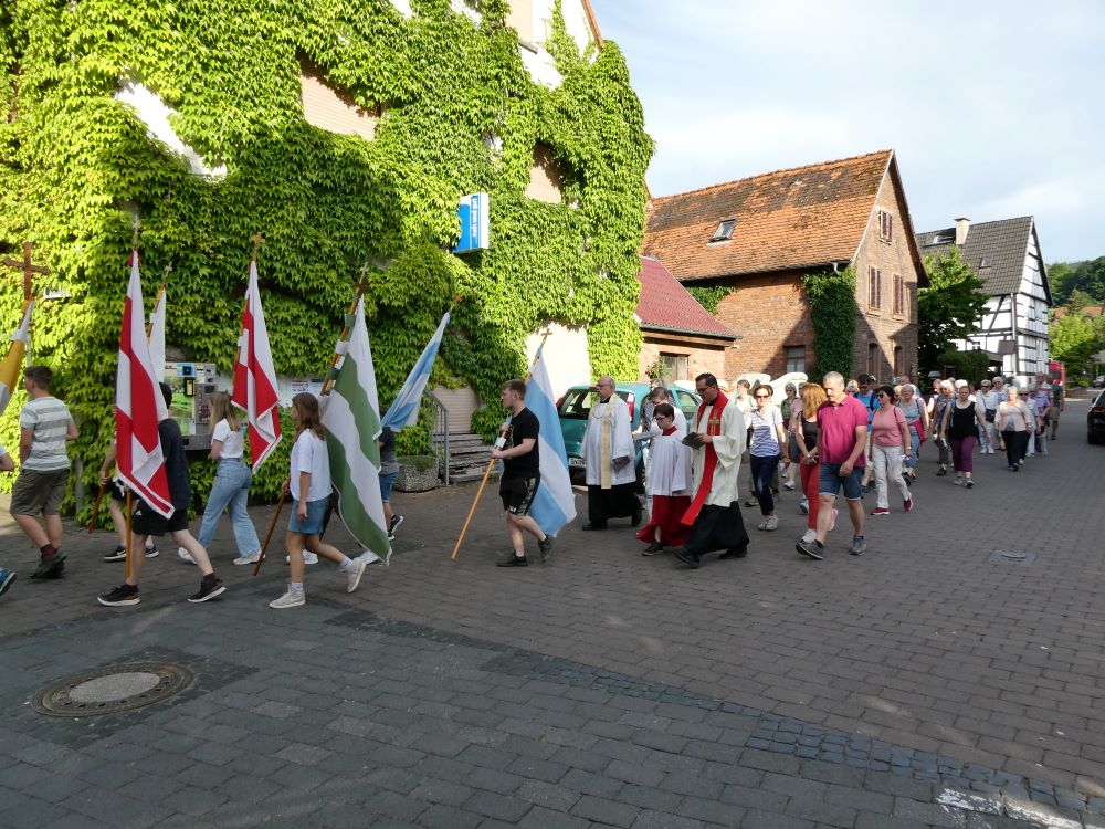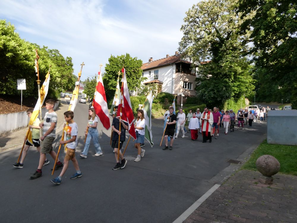 Am Do. 1.6.23 starteten bei bestem „Wall-Wetter“ über 30 Waller ab der Marien -Grotte bei Kassel zur traditionellen Bittprozession auf dem alten Wallweg nach Höchst.