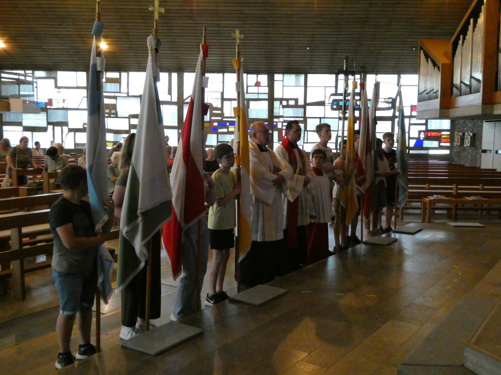 An der Wendelinus Kapelle wurden die Kässeler Waller von Kaplan Schefler empfangen und gemeinsam ging es dann in einer stattlichen Prozession zur abschließenden Wallmesse in die Höchster St. Wendelinus Kirche.