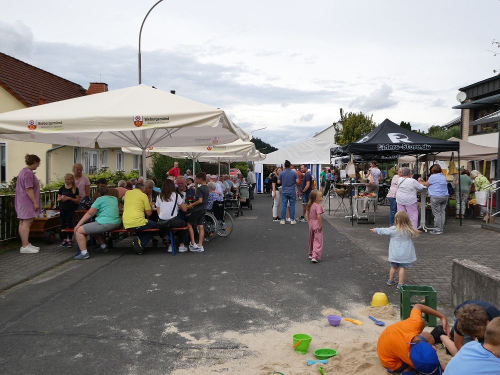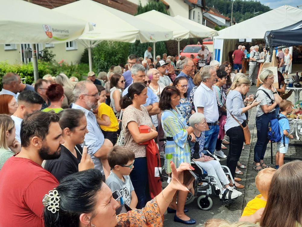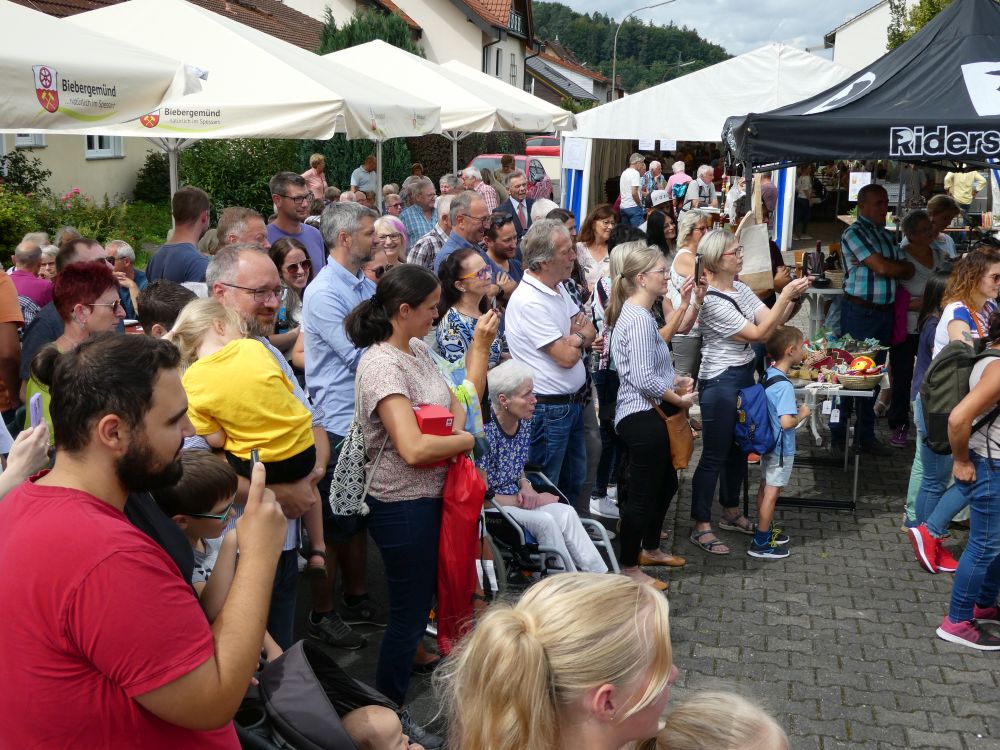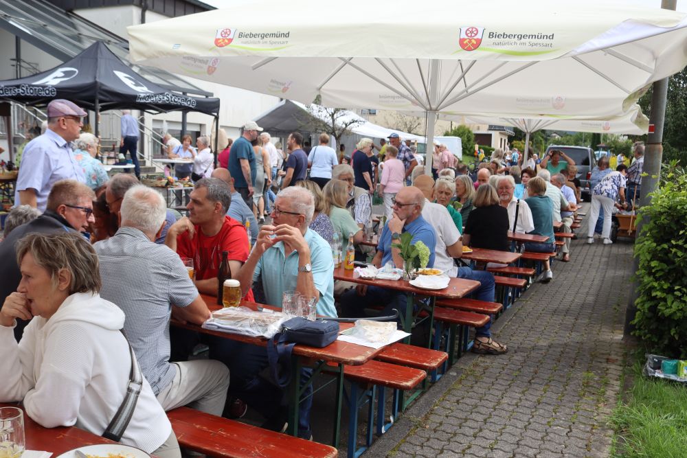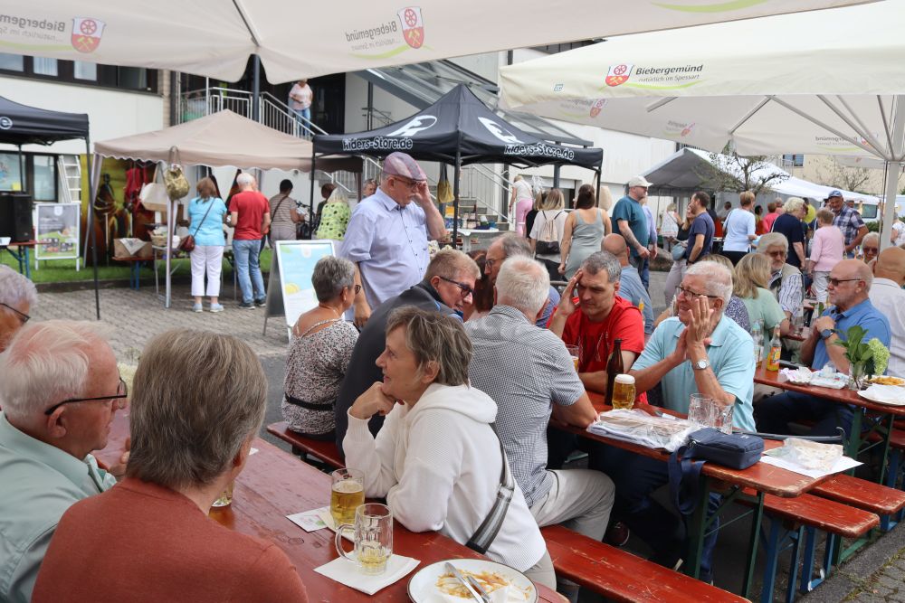 Regen Zuspruch hatte der“ Weltladen“, der auch seit Mai 22 auf dem Biebergemünder Wochenmarkt seine „Fair gehandelten Produkte“ anbietet an seinem Info – und Verkaufstand,