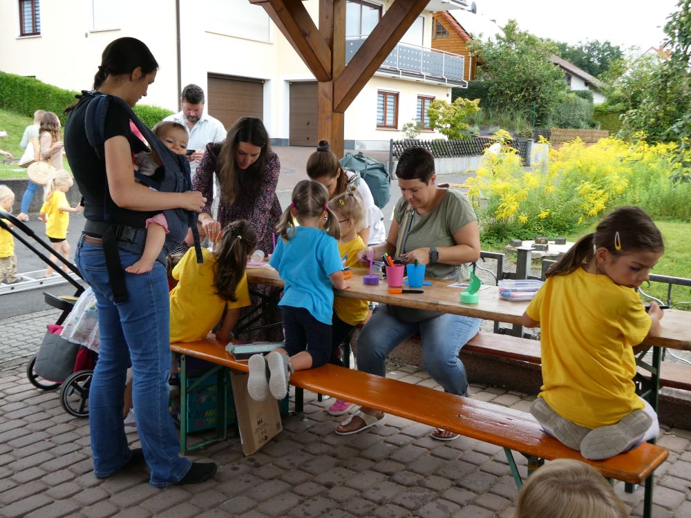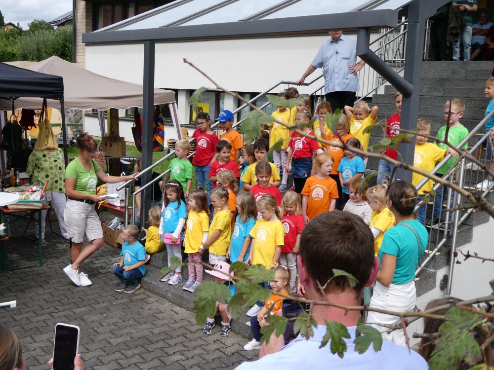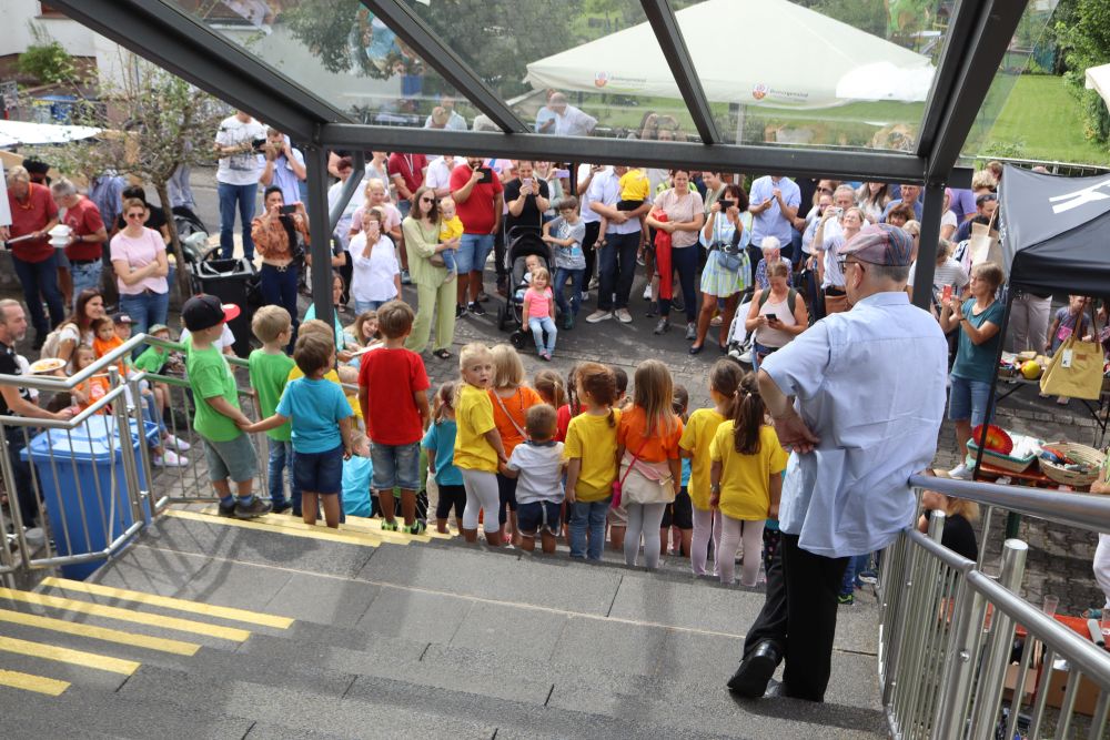 Um 13 Uhr hatten die Kinder der Kita St, Nepomuk auf der großen Treppe am Pfarrheim ihren großen Auftritt mit viel Applaus und Zugaben