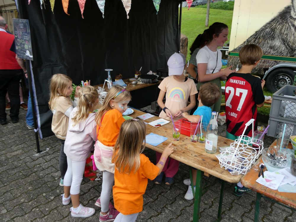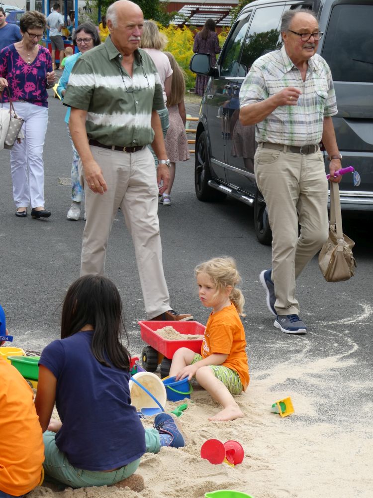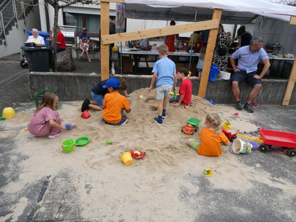 Für kleine und größere Kinder hatten die Veranstalter ab ca. 14 Uhr viel Spiel und Spaß vorbereitet, wie die Spielewiese und -straße mit vielen Spielmöglichkeiten oder Schminken im Carport. Am“ Riesensandkasten“ herrschte rege Beschäftigung, hier wurde sogar am Pfarrfestsonntag gebaut und Baustoffe (sogar bis ins Festzelt) transportiert und „Erwins Kinderkarussell“ drehte unermüdlich seine Runden