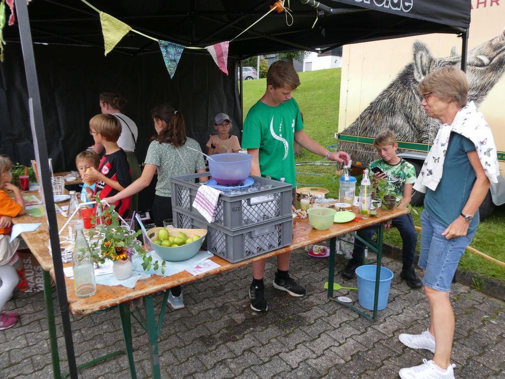 Der Knaller des Pfarrfestes war auch in diesem Jahr die Messdienergruppe. Mit ihren alkoholfreien Cocktails und leckeren Crèpes versorgten und verwöhnten sie alte und junge Gäste. Den Erlös wollen sie einer Aktion von „Missio“ für Straßenkinder in Brasilien spenden.