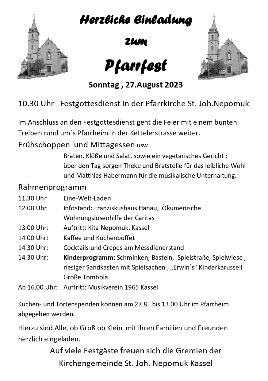 Auch das „ 51 Jahre Pfarrfeste in Kassel“ startete am Sonntag 27.08. 23 um 10,30 Uhr traditionell mit einem eindrucksvollen Festgottesdienst in St. Joh. Nepomuk. !