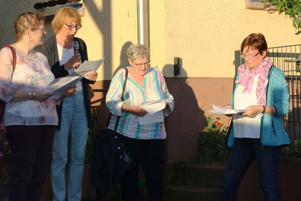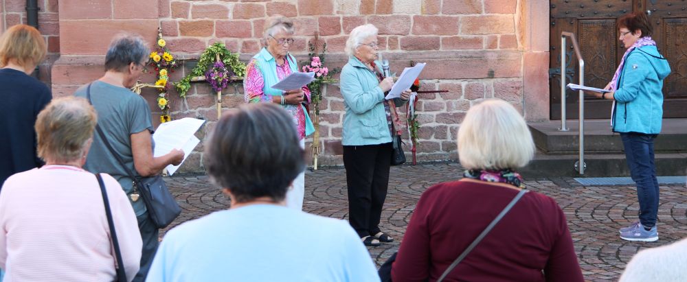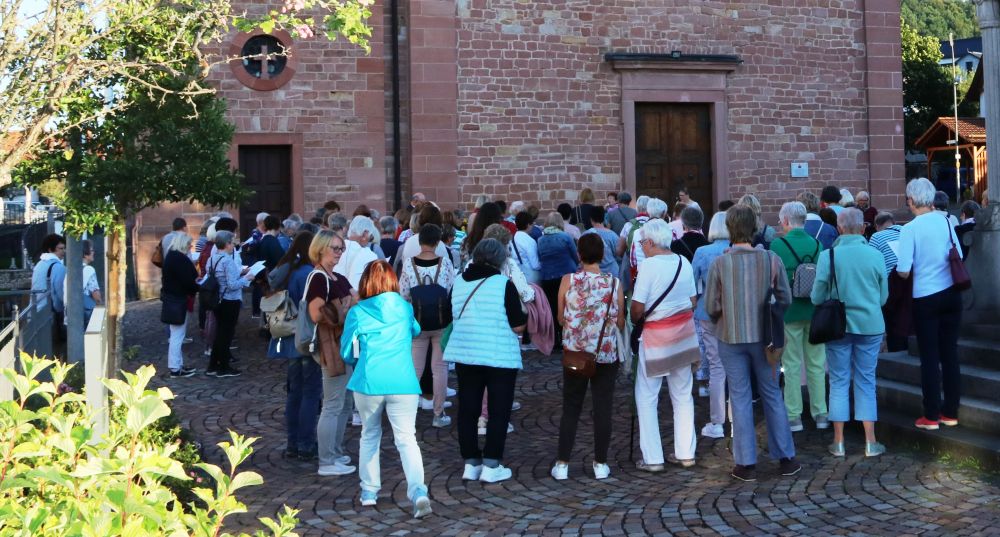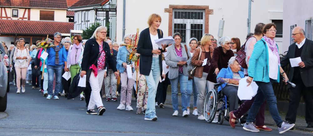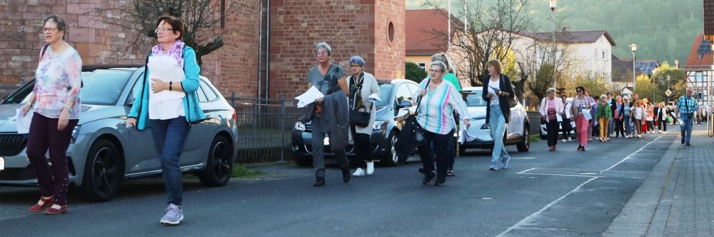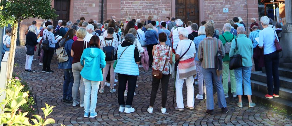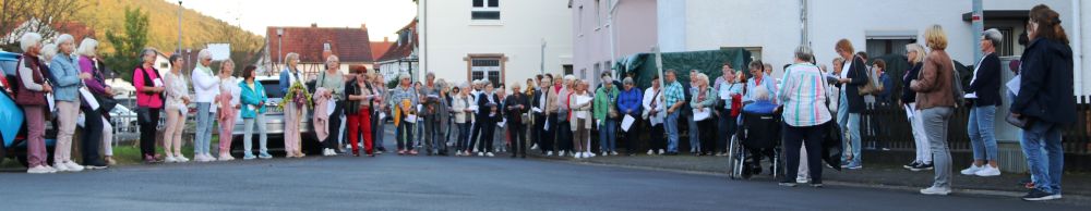 Eingeladen hatte die kfd Kassel. Sehr viele Frauen aus den verschiedenen Ortsgruppen waren gekommen zum kurzen meditativen Spaziergang rund um die Kirche. Mit kleinen Impulsen aus dem täglichen Leben gab es auch Stationen in verschiedenen Höfen .