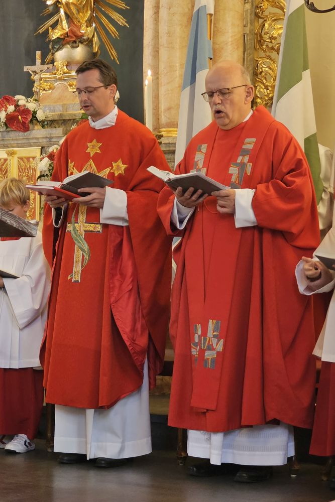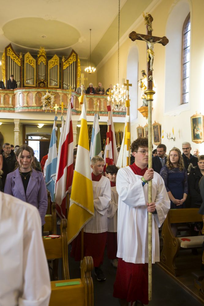 Unser Pfarrer Karl-Peter Aul begrüßte den Domkapitular Thomas Renze herzlich. Auch die Firmlinge begrüßten ihren Firmspender und gestalteten den Festgottesdienst aktiv mit. Nach der Firmung und am Ende der Eucharistiefeier gratulierte das Mitglied des Pfarrgemeinderates Wolfgang Günther den Jugendlichen. Abschluss war ein Empfang auf dem Kirchplatz.