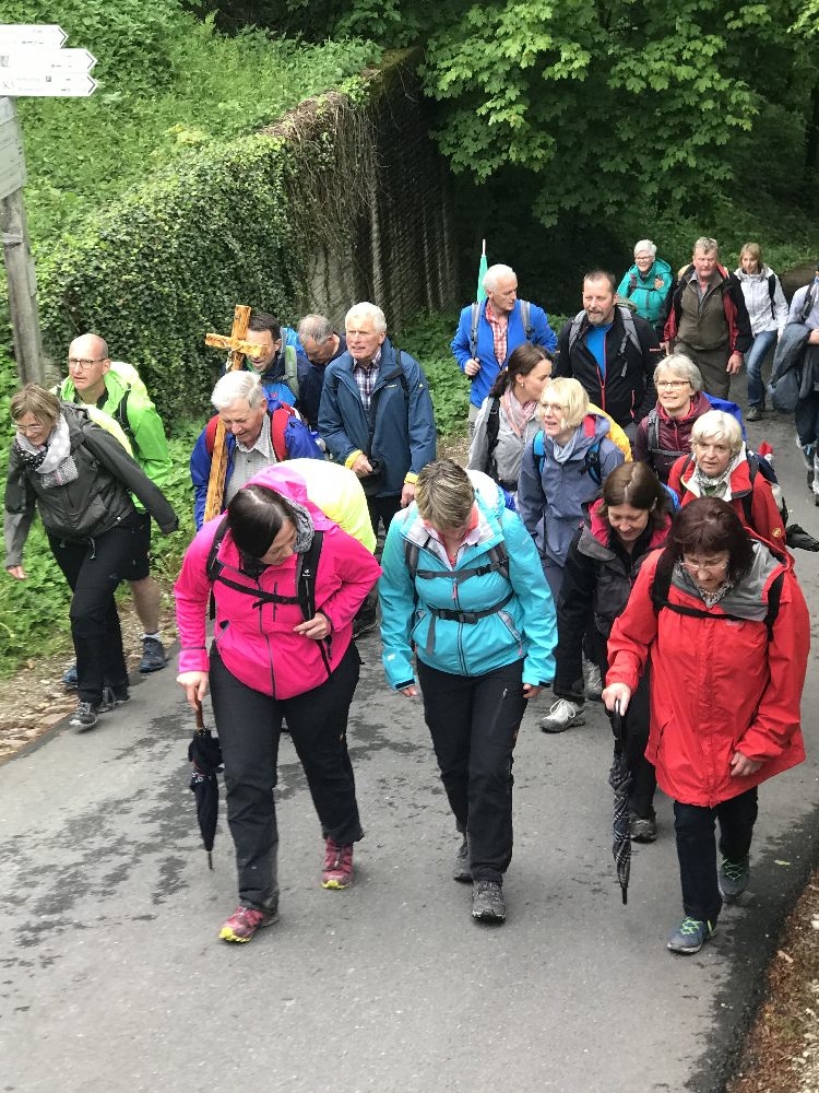 Die 45. Fußwallfahrt unserer KAB nach Maria Buchen war in diesem Jahr wetterbedingt eine besondere Herausforderung. Schon beim Start um 5 Uhr regnete es heftig, trotzdem machten sich 22 Frauen und Männer auf den Weg.