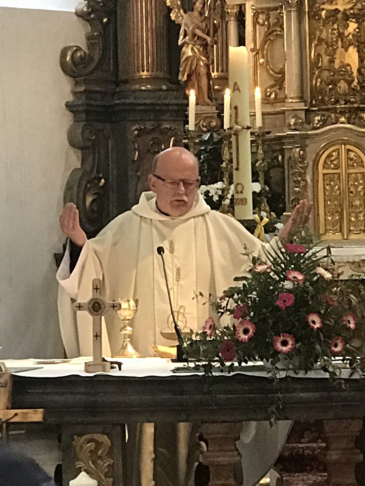 In seiner Ansprache würdigte Pfarrer Aul Walter Pfeifer, der bei allen 45 Fußwallfahrten mit dabei war und sie seit Jahrzenten organisiert und leitet - seine Frau Anni und seine Familie unterstützt ihn dabei. Ihnen unseren herzlichsten Dank!