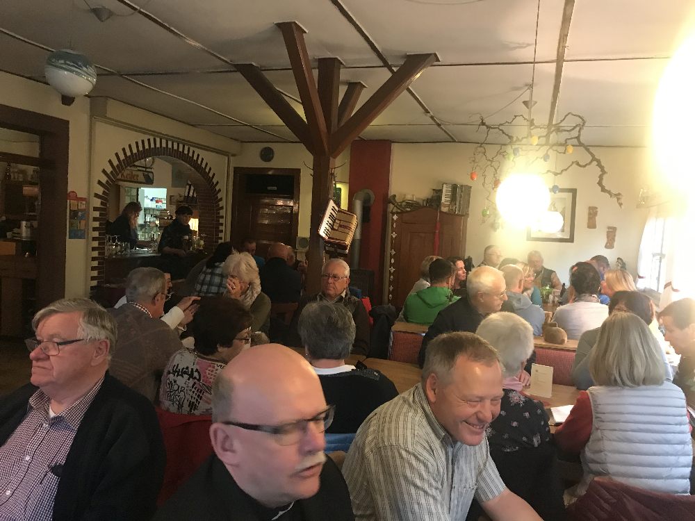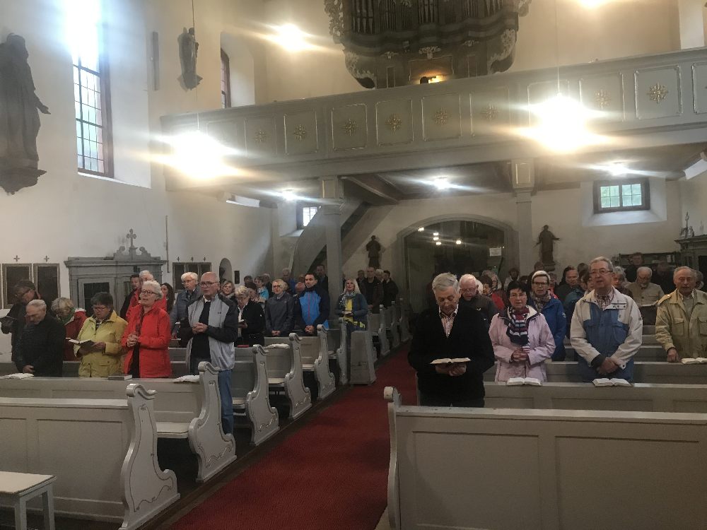 Ein längerer Zwischenstopp wurde an der Bayrischen Schanz eingelegt, wo sich weitere Pilger anschlossen. Der Pilgergottesdienst in der Wallfahrtskirche Maria Buchen mit unserem Pfarrer Karl-Peter Aul war Abschluss und Höhepunkt dieser Fußwallfahrt, zu dem weitere Pilger per Bus oder PKW angereist waren. Die anschließende Einkehr im Buchenstüberl hatten sich insbesondere die Fußpilger redlich verdient.
