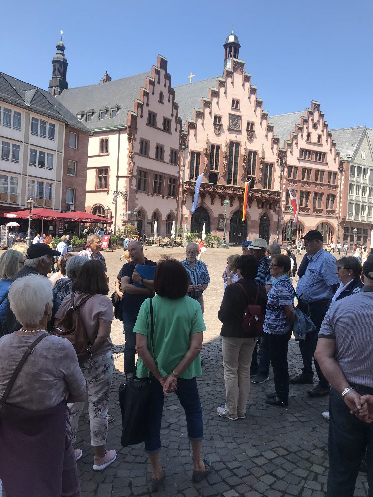 Eine große Schar war der Einladung gefolgt und genoss diesen Tag mit optimalem Wetter in Frankfurt, der mit der Führung durch die neue Altstadt begann und in einem Äppelwoi Lokal in Sachsenhausen ausklang.