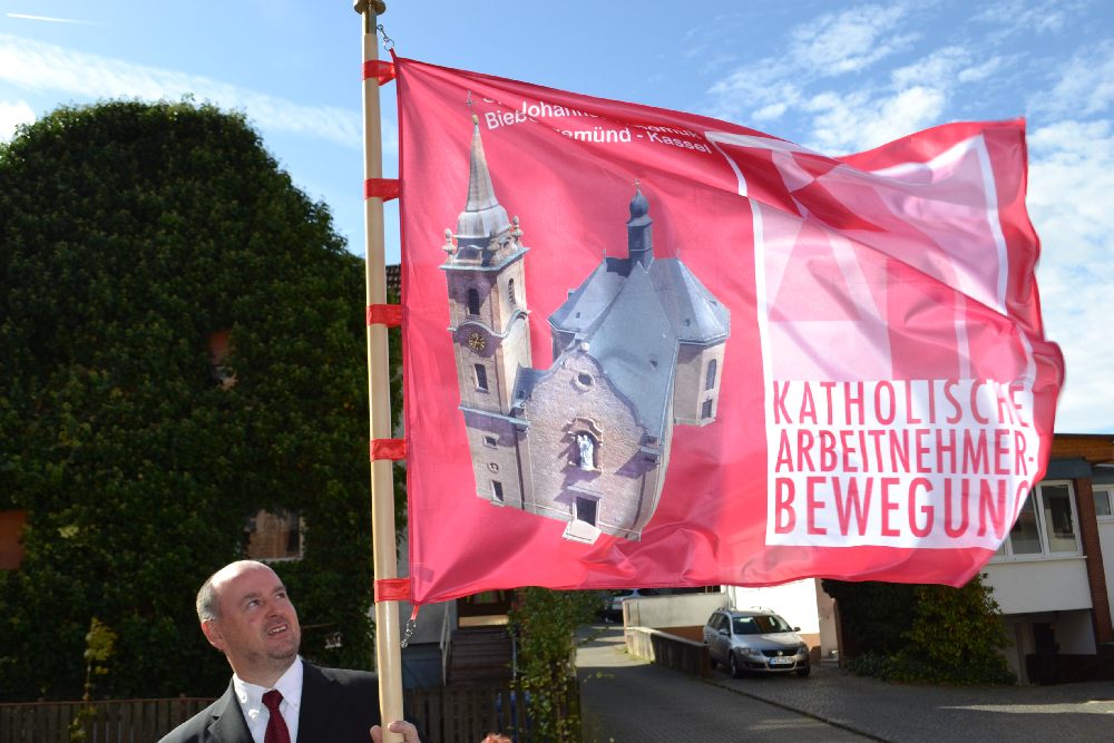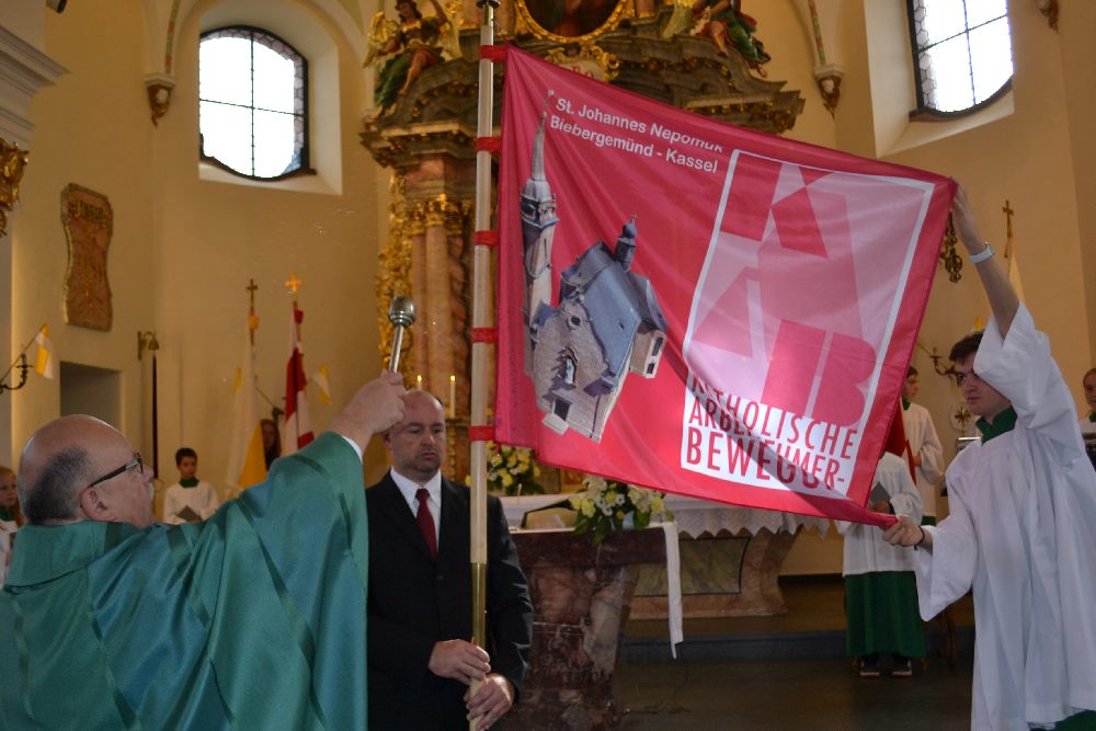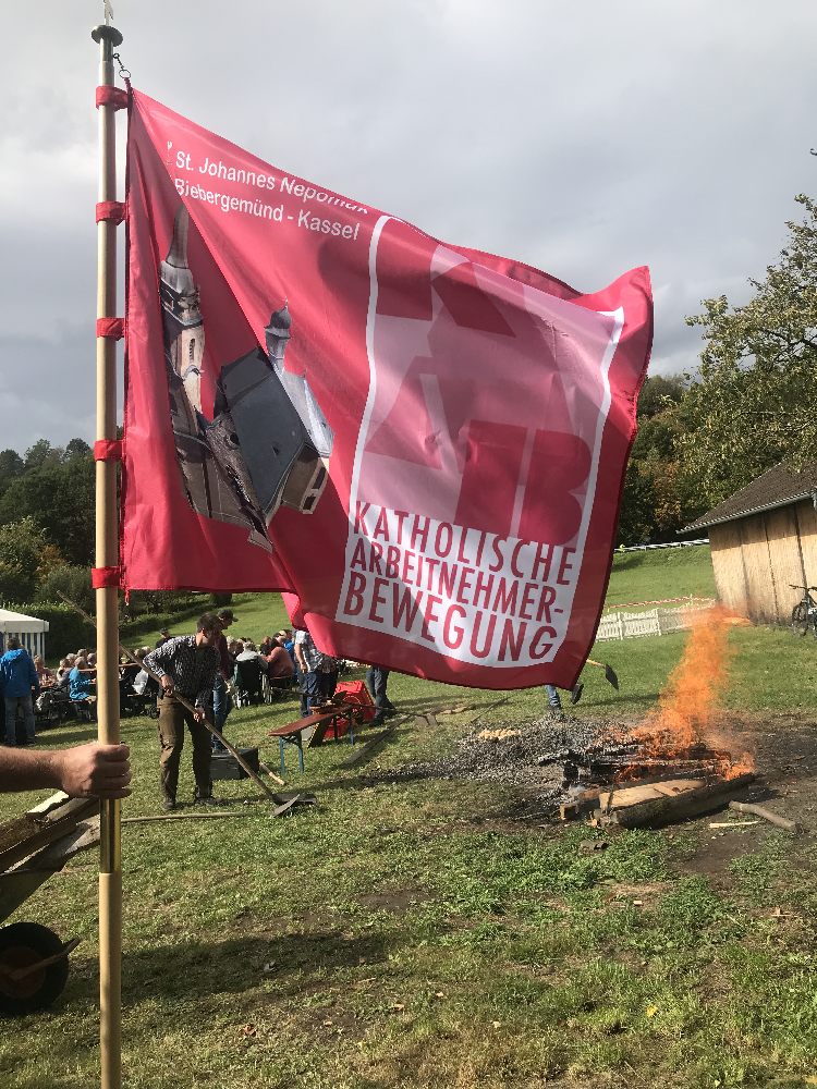 Das Bratfest der KAB-Kassel am Sportplatz wurde mit einem feierlichen Hochamt eröffnet, dabei wurde von Pfarrer und KAB-Präses Karl-Peter Aul auch die neue KAB-Fahne feierlich geweiht.