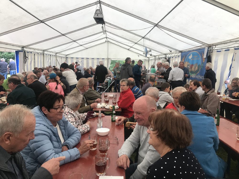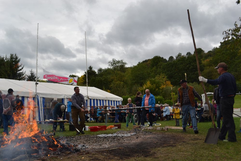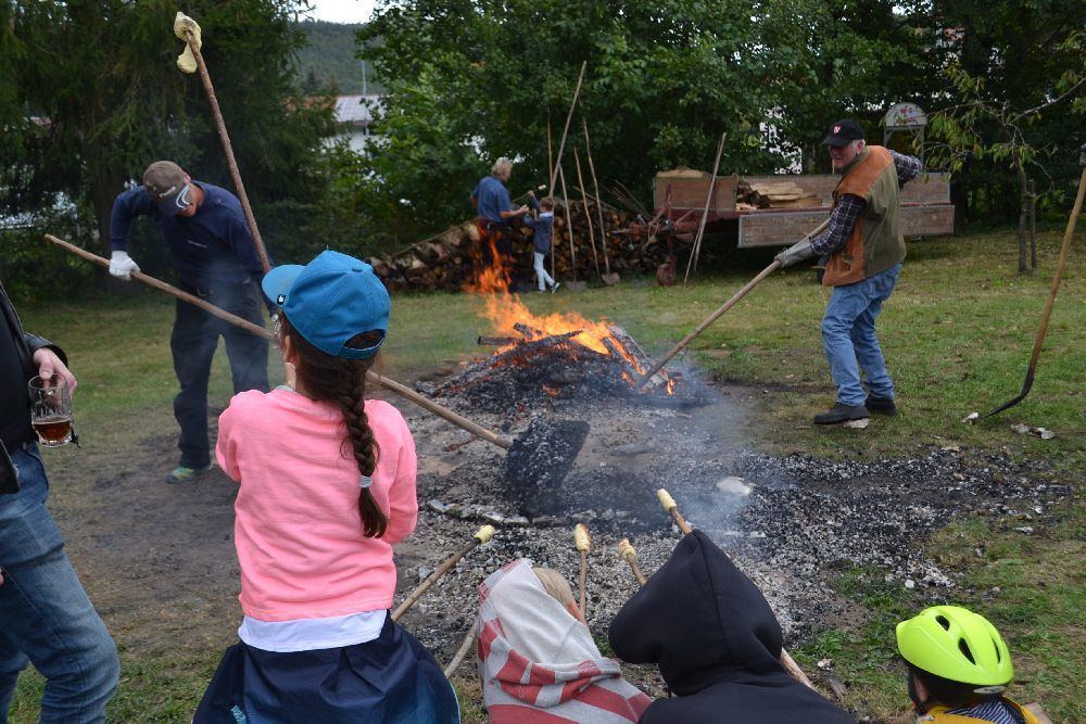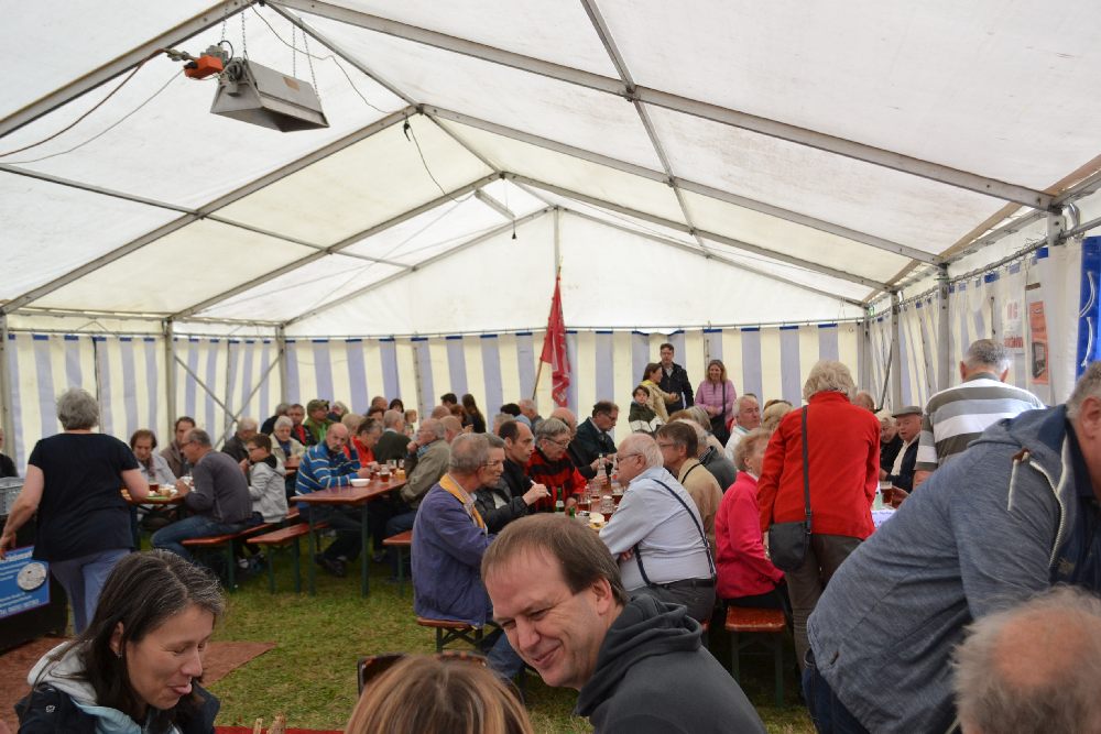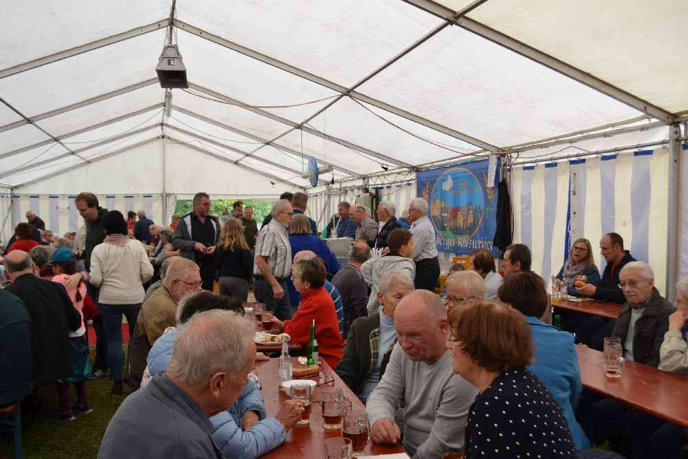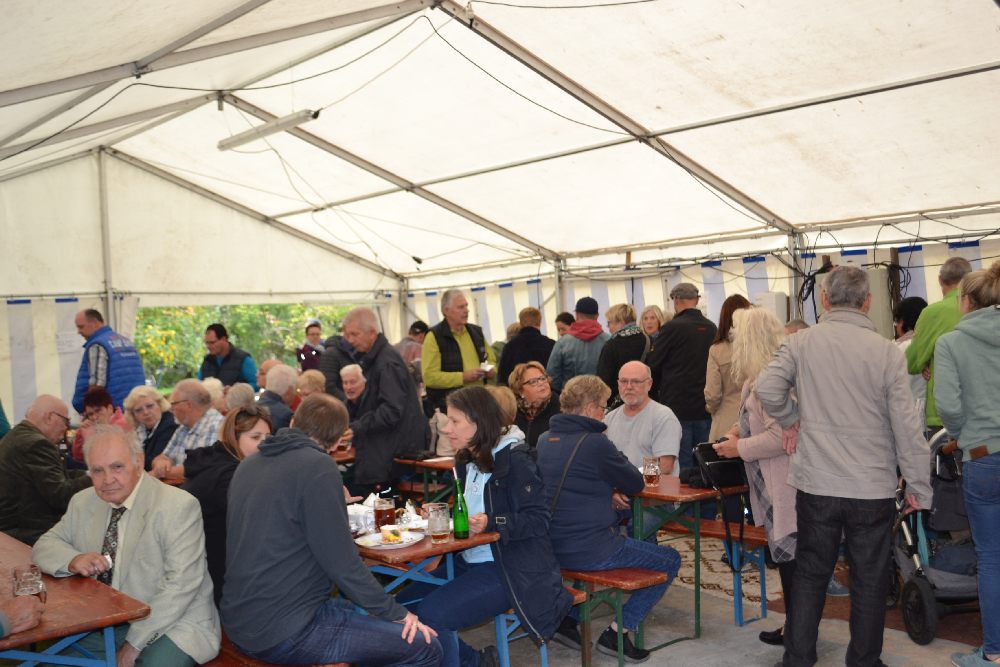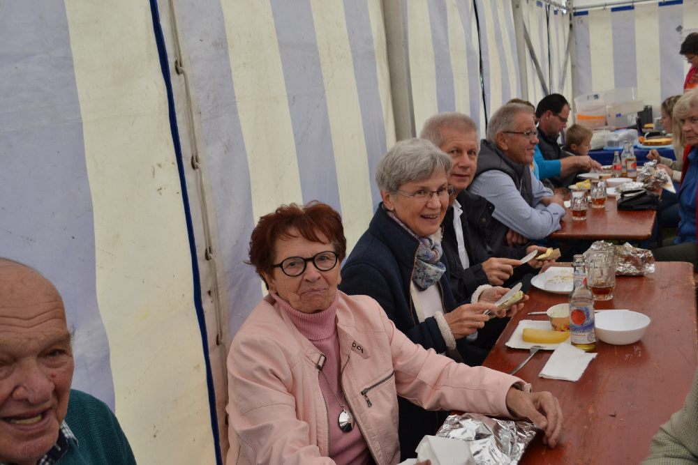 Dieses Jahr hatte das Bratfest am Sportplatz erstmals auch "Bratfestwetter" zu bieten, also herbstliches wechselhaftes Wetter mit ab und an ein wenig Regen. Dies hat dem frohen Fest in keinster Weise geschadet, man konnte den Eindruck haben, dass man dieses Wetter sogar genoss. Wie immer gab es Kreuzbergbier, Hackbraten, Kuchen und ganz viele Möglichkeiten sich zu unterhalten.