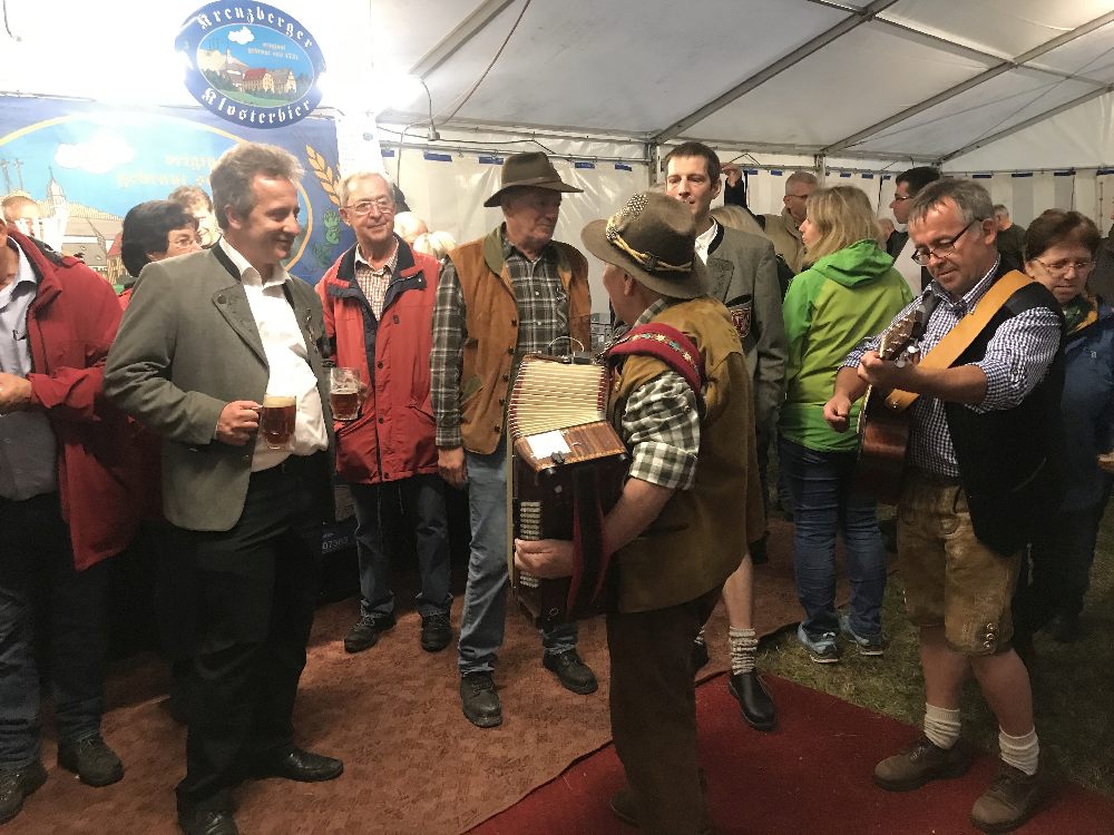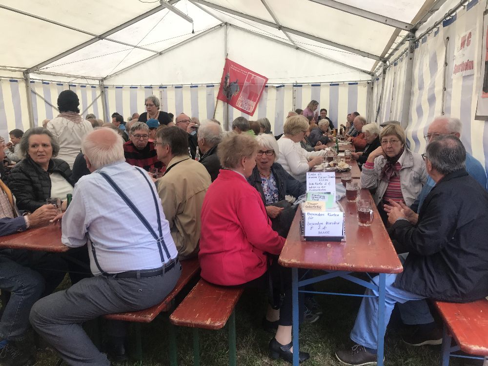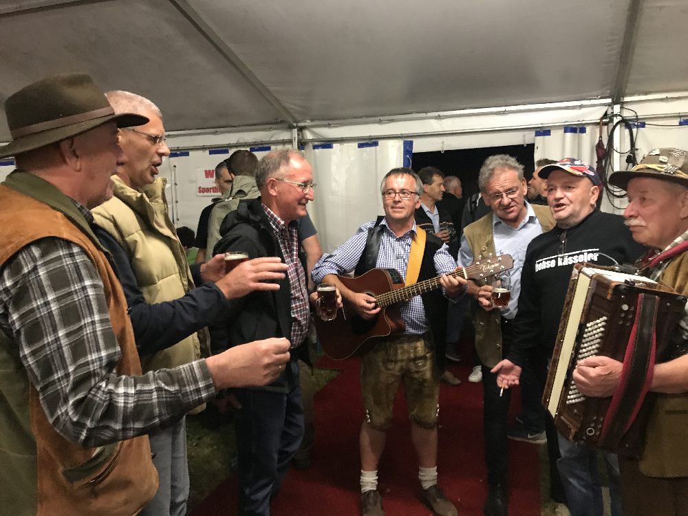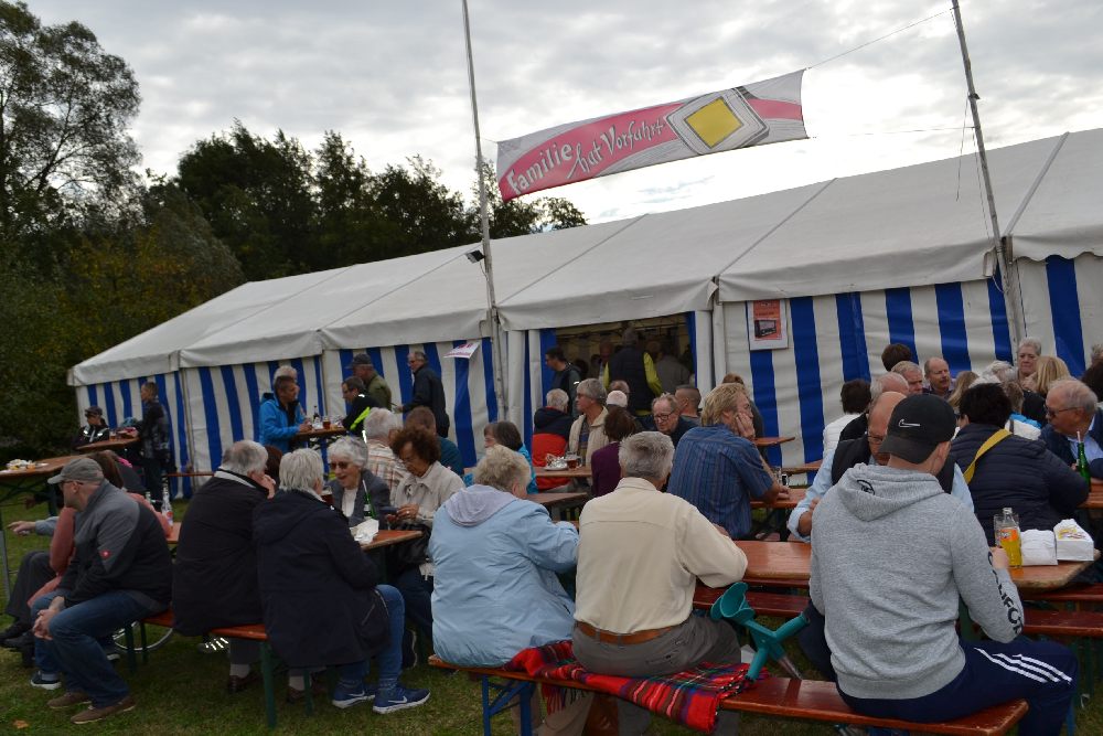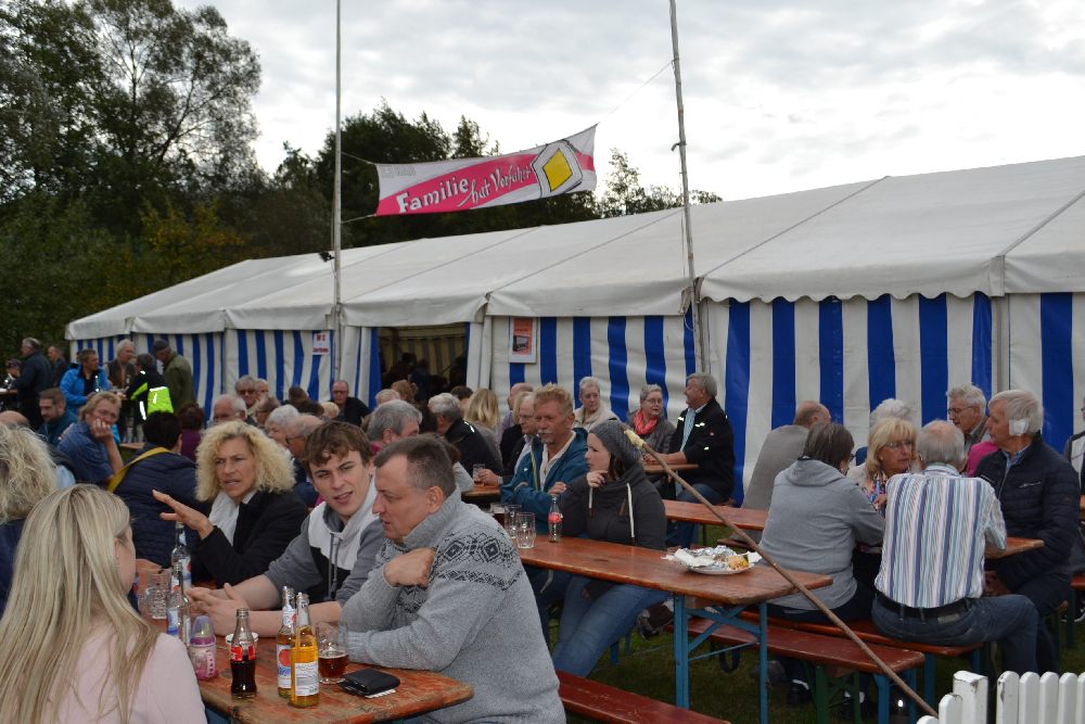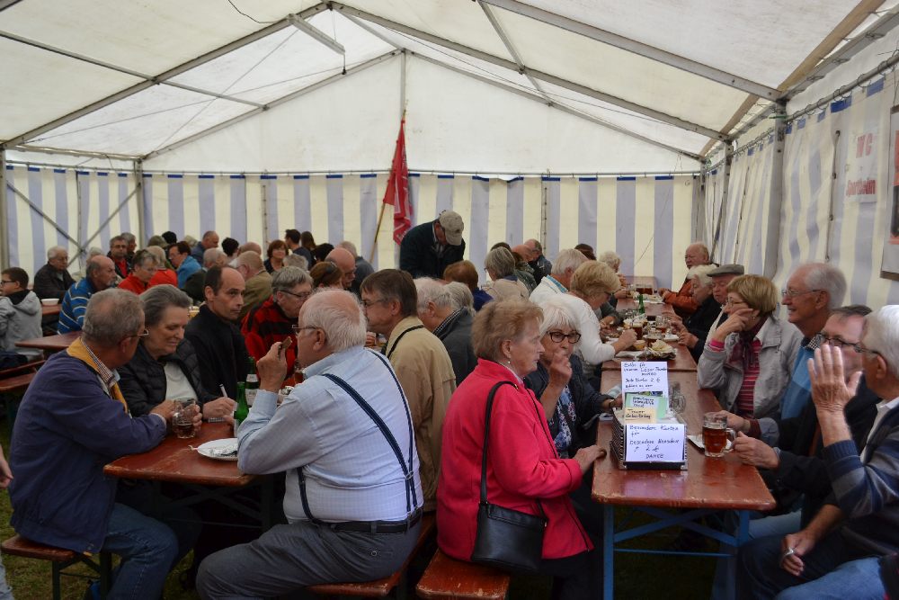 Dieses Jahr hatte das Bratfest am Sportplatz erstmals auch "Bratfestwetter" zu bieten, also herbstliches wechselhaftes Wetter mit ab und an ein wenig Regen. Dies hat dem frohen Fest in keinster Weise geschadet, man konnte den Eindruck haben, dass man dieses Wetter sogar genoss. Wie immer gab es Kreuzbergbier, Hackbraten, Kuchen und ganz viele Möglichkeiten sich zu unterhalten.