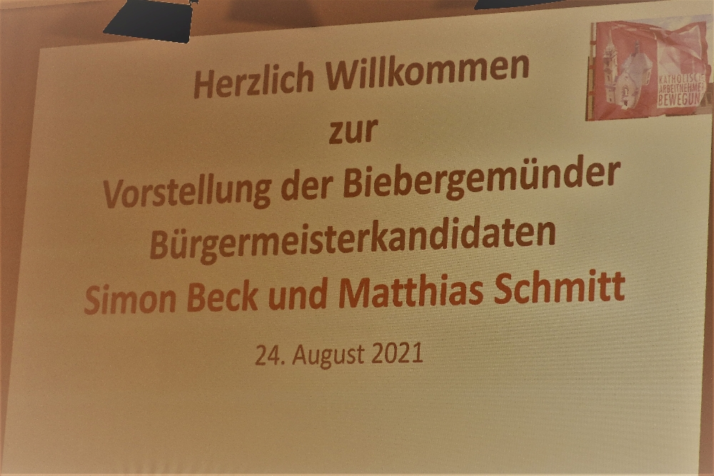 Die KAB-Kassel stellte in einer öffentlichen Veranstaltung, am 24. August 2021, die beiden Bewerber Simon Beck und Matthias Schmitt um das Amt des Bürgermeisters von Biebergemünd vor.