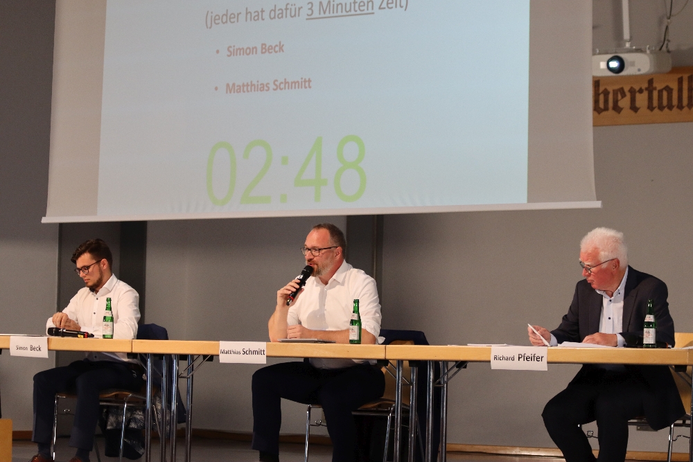 Den Herren Schmitt und Beck wurden die Fragen vorab zur Verfügung gestellt. Beide Kandidaten hatten sich sehr gut vorbereitet und gaben fundierte Antworten.