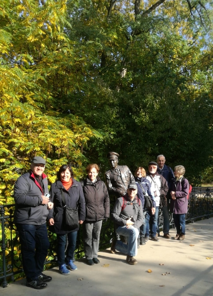 Und tatsächlich, auf einer Brücke über die Usa, in der Nähe des sehenswerten Kurparks, trafen sie Ihn (oder zumindest eine lebensgroße Statue).