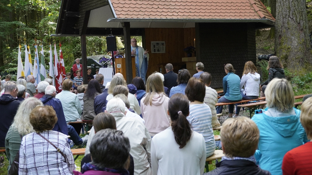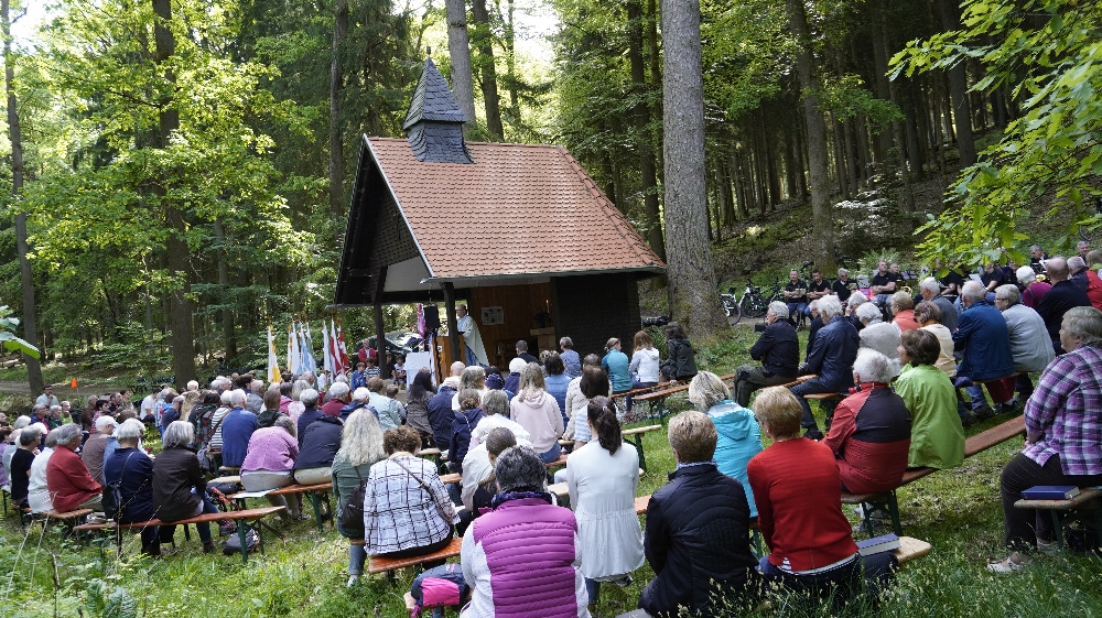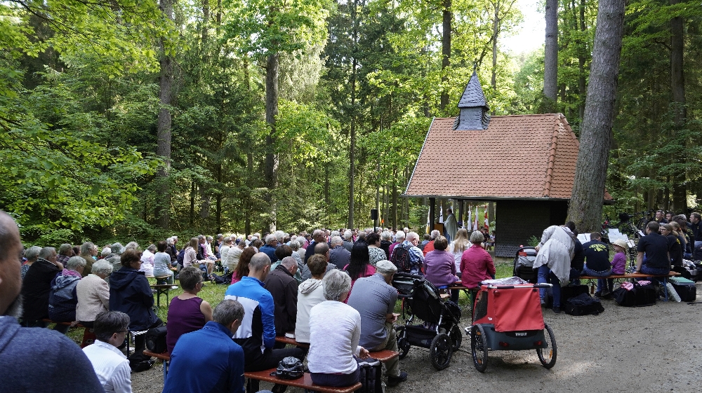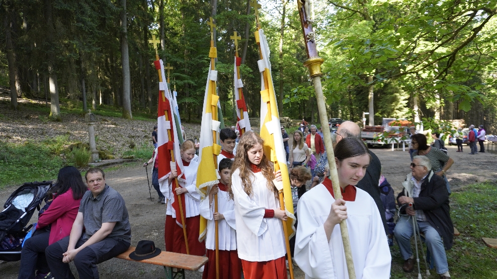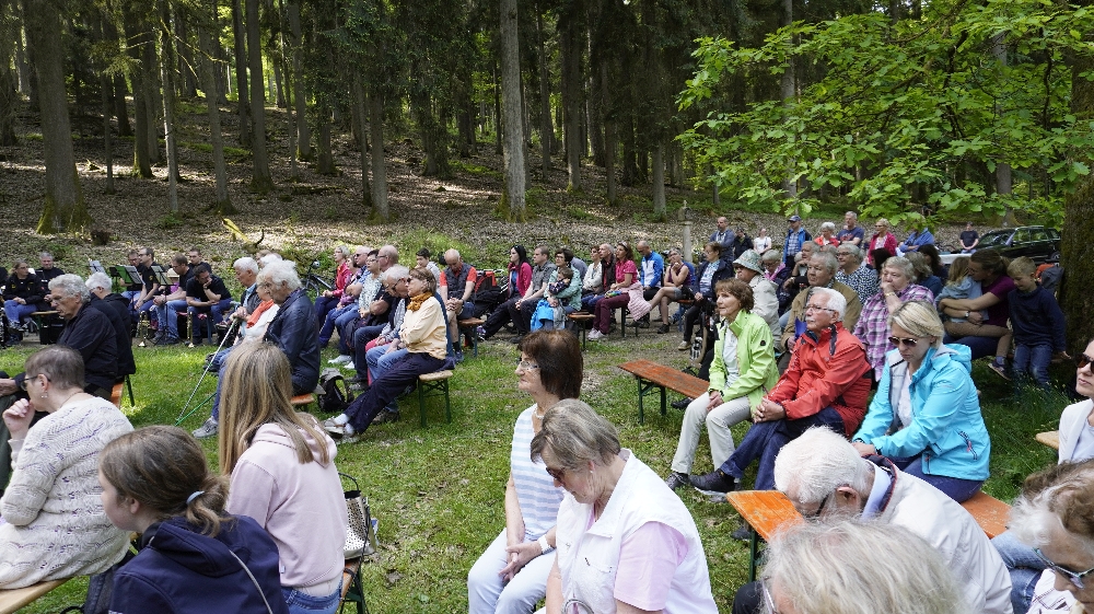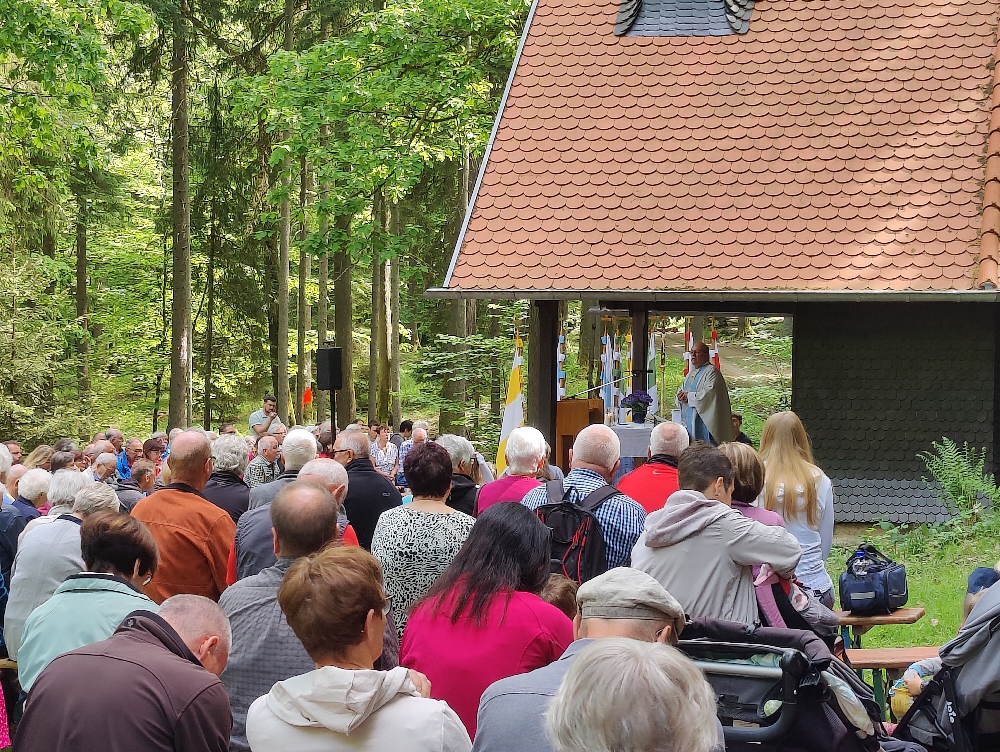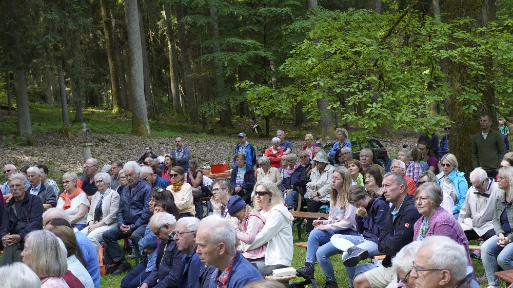 Der traditioneller Maigottesdienst in der Grauen Ruh wurde wegen der Erstkommunion am 1. Mai am 15. Mai gefeiert. Es war Corona-bedingt die ersten Messfeier nach der großen Renovierung der Grauen Ruh-Kapelle in 2019. Von der Mittleren Tannenhütte ging es in einer Prozession durch den herrlichen frischen Mai-Wald zur Kapelle.