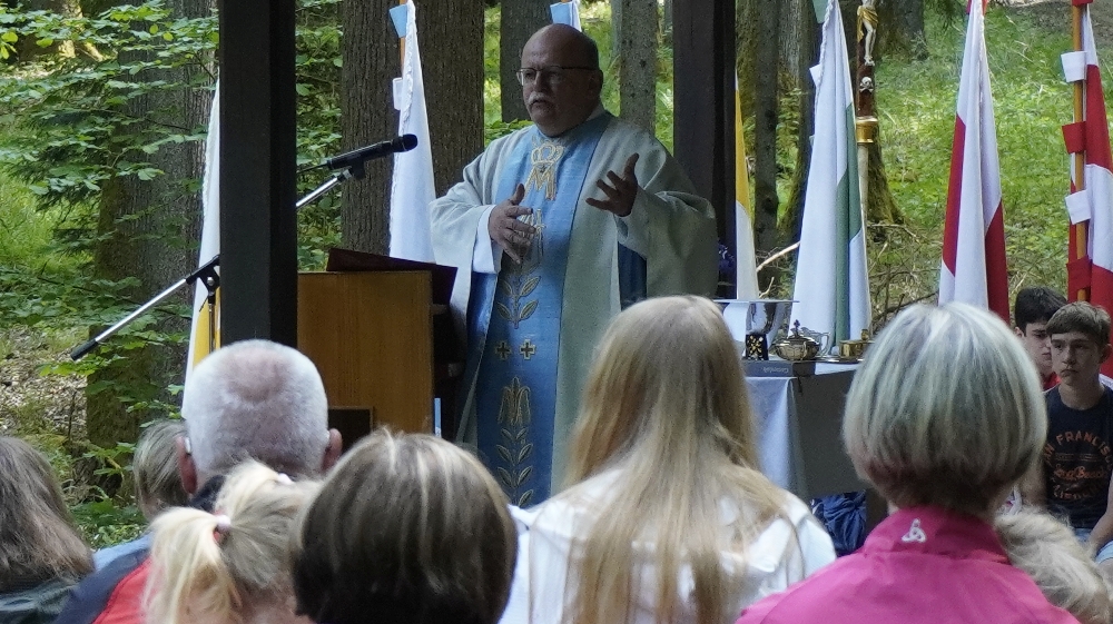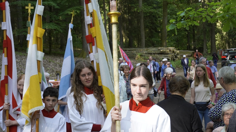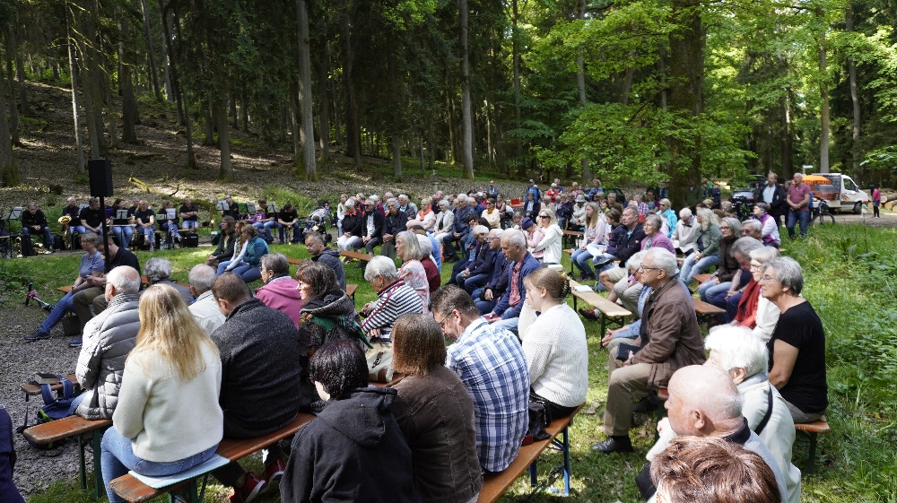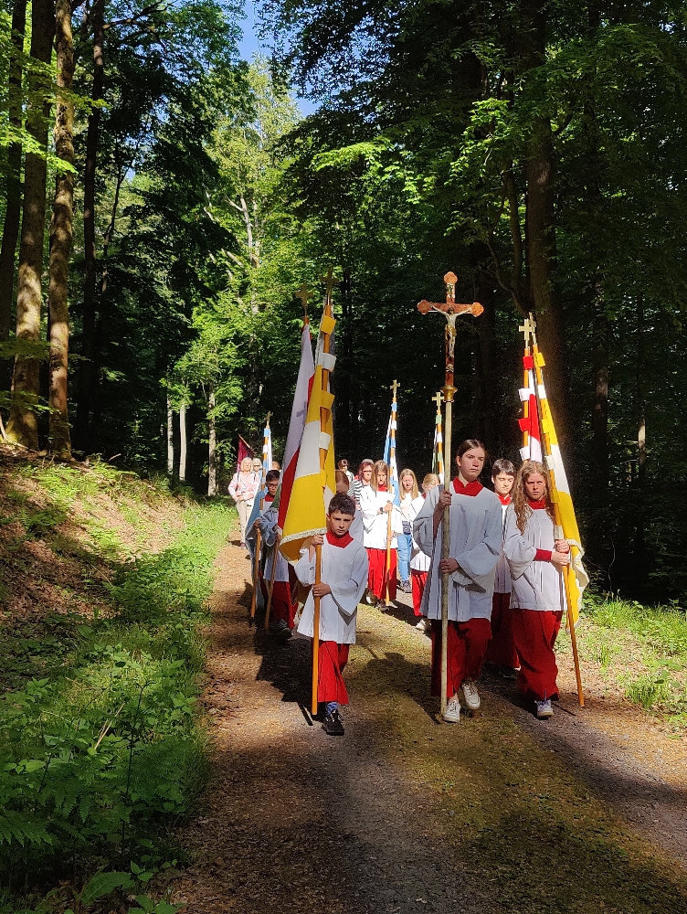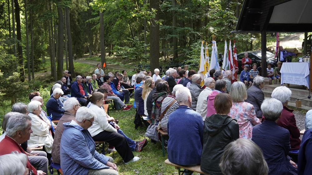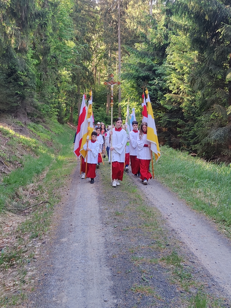 Der traditioneller Maigottesdienst in der Grauen Ruh wurde wegen der Erstkommunion am 1. Mai am 15. Mai gefeiert. Es war Corona-bedingt die ersten Messfeier nach der großen Renovierung der Grauen Ruh-Kapelle in 2019. Von der Mittleren Tannenhütte ging es in einer Prozession durch den herrlichen frischen Mai-Wald zur Kapelle.