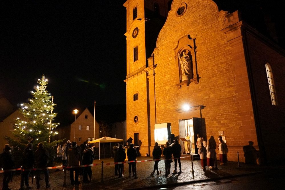 Die Christmette in St. Johannes Nepomuk wurde in drei Dimensionen gefeiert, auf dem Kirchplatz, in der Kirche und per Livestream