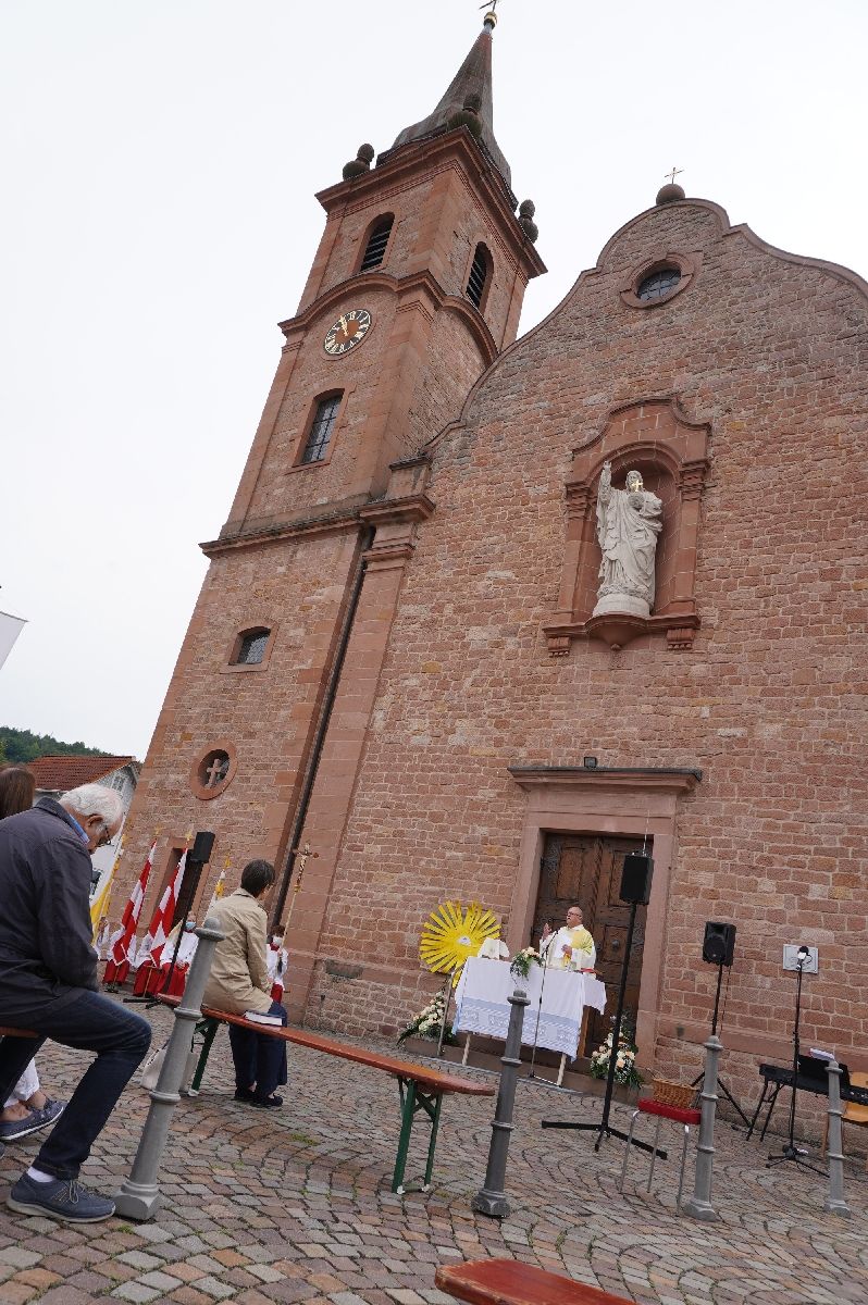 Das Pfarrfest konnte Corona bedingt nicht gefeiert werden. Deshalb feierte die Gemeinde St. Johannes Nepomuk Festgottesdienst auf ihrem schönen Kirchplatz in Kassel.