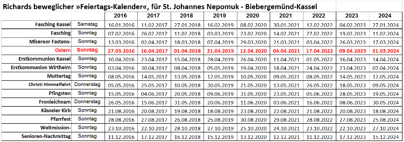 Wiederkehrende Feste und Feiertage in unserer Pfarrgemeinde